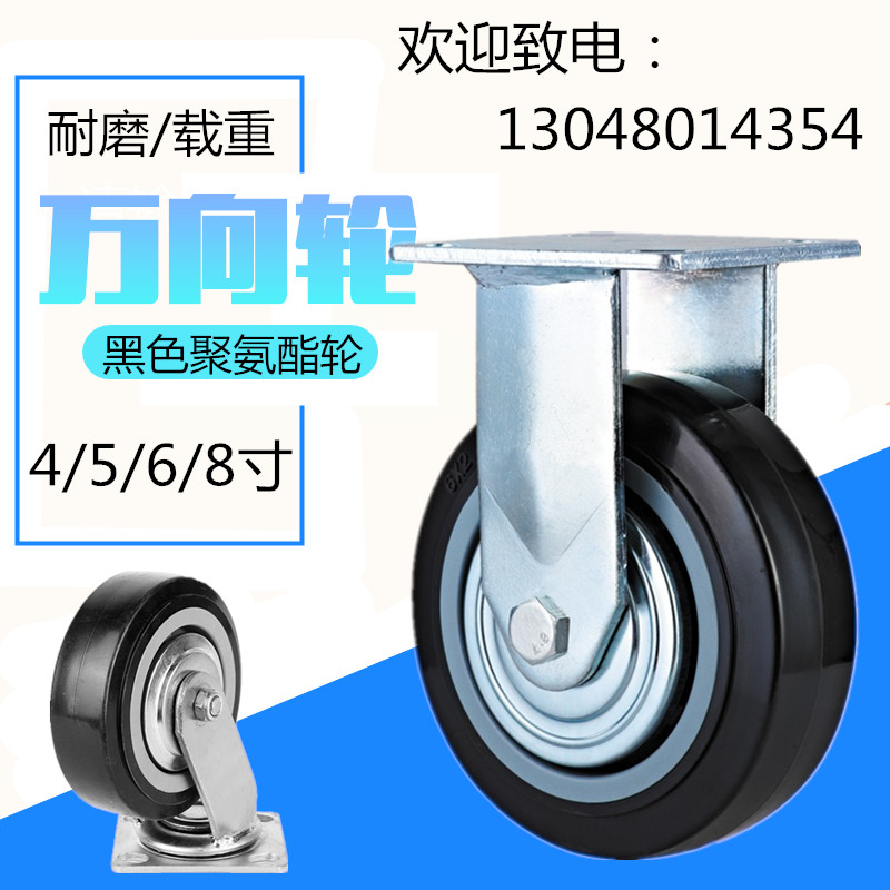 重型万向轮耐磨聚氨酯PU轮万向轮4寸5寸6寸8寸手推车轮子黑超脚轮