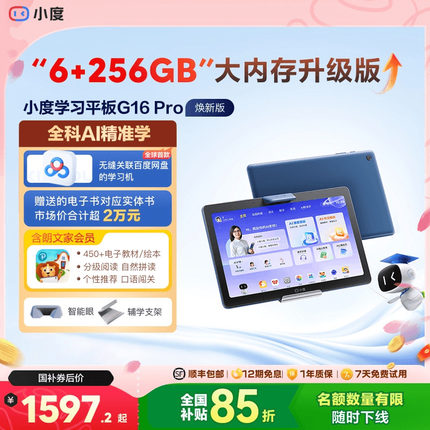 【全国补贴15%】小度智能学习平板G16 Pro 焕新升级内存AI小度学习机一年级到高中护眼儿童平板电脑英语电教