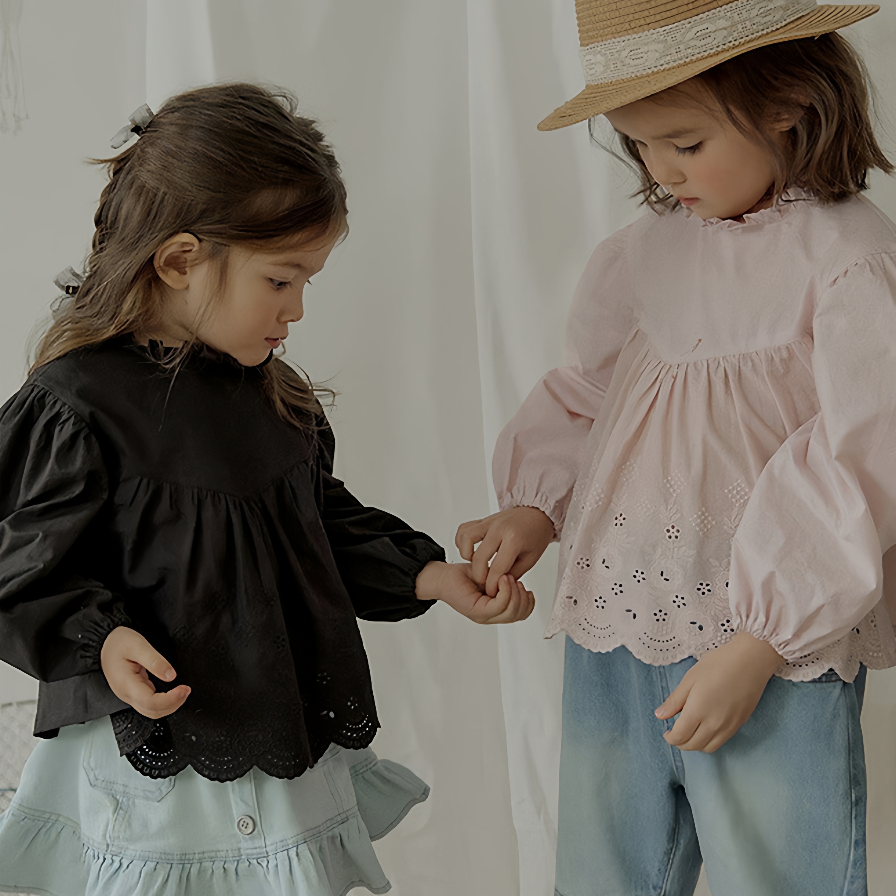 春秋女童淑女公主风蕾丝娃娃衫长袖花边立领衬衫花边刺绣衬衣纯棉