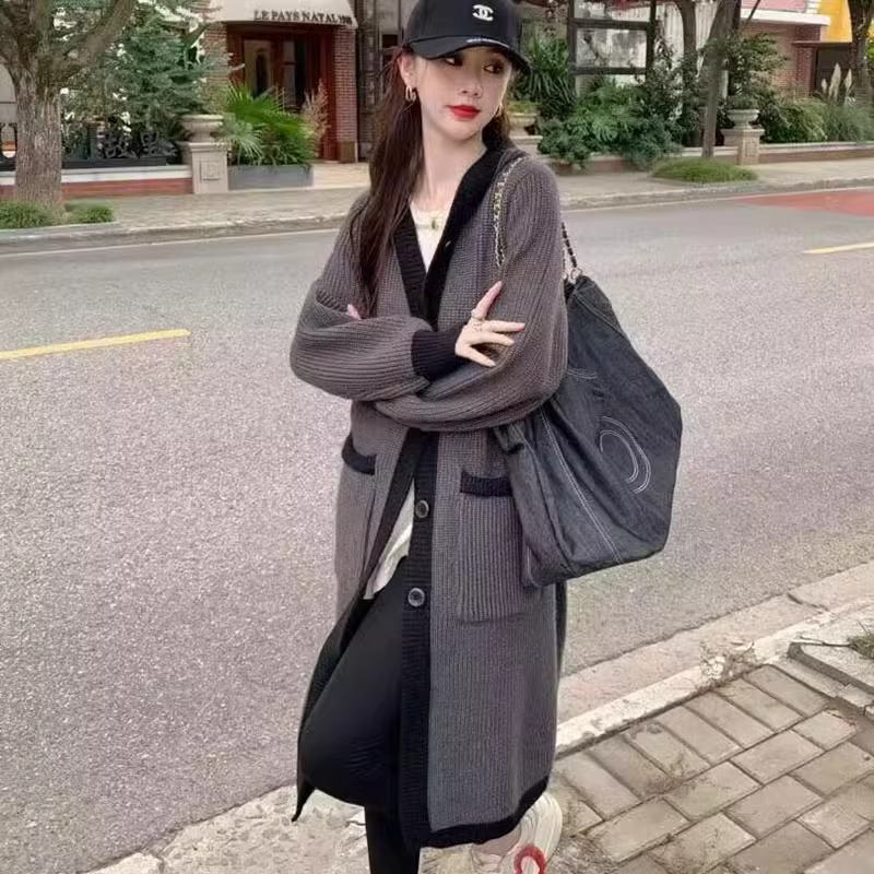 中长款连帽过膝纯色宽松开衫毛线