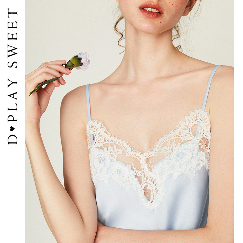 DPLAYSWEET轻奢缎面定位蕾丝开叉吊带睡裙睡衣家居服女2025夏