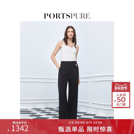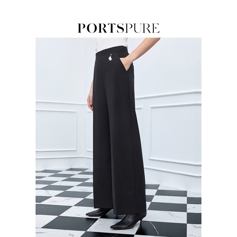 宝姿PORTSPURE女装舒适高智精英通勤可拆卸珍珠阔腿长裤
