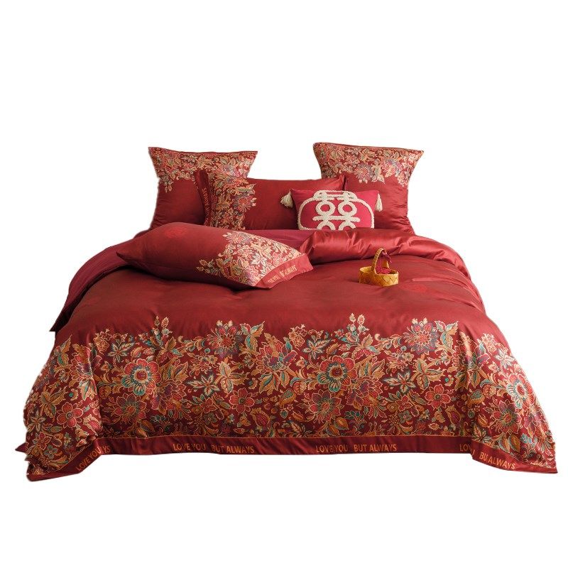 新中式印花结婚四件n套2025新款红色床单被套婚庆床上用品婚嫁