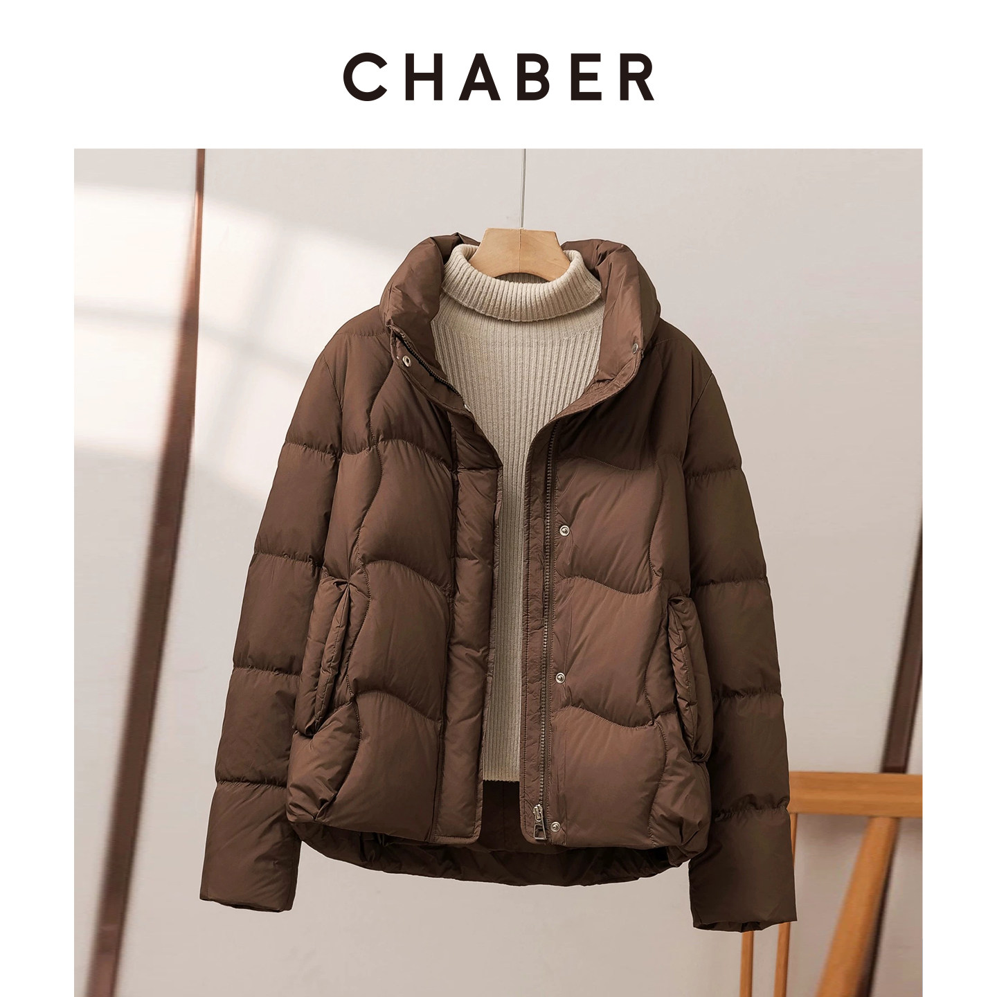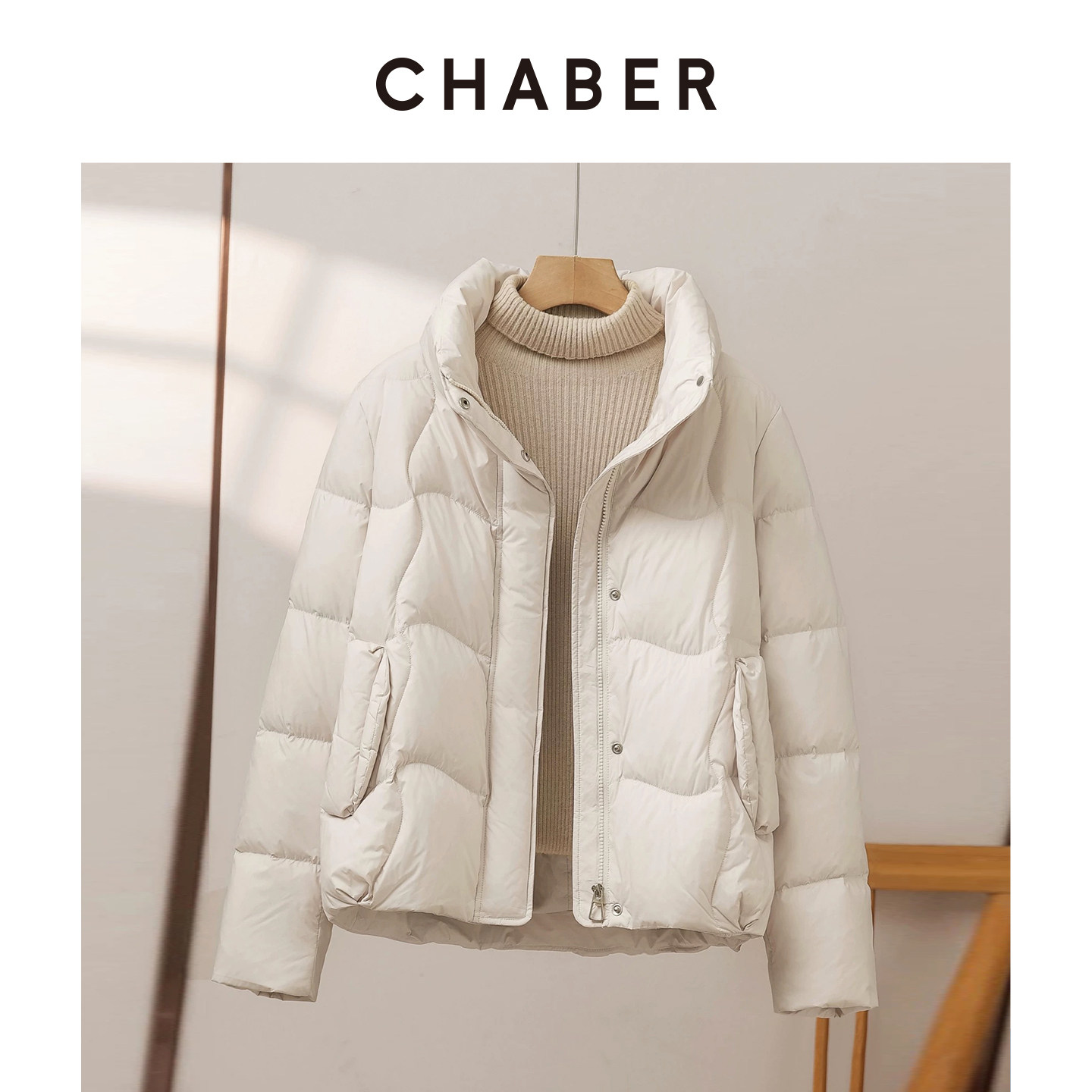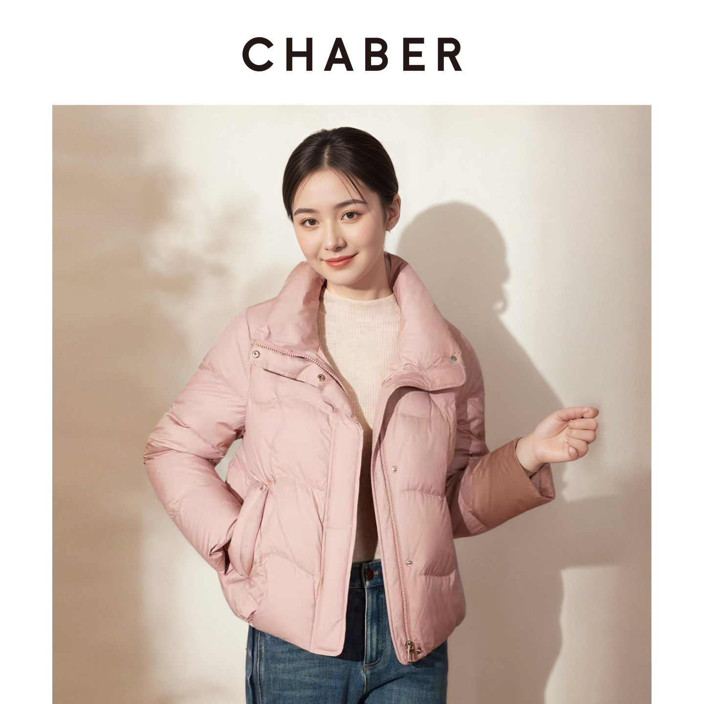 CHABER巧帛冬季新款保暖立领短款厚羽绒服时尚纯色宽松显瘦女外套