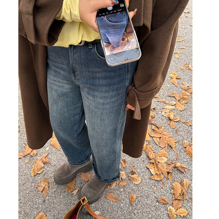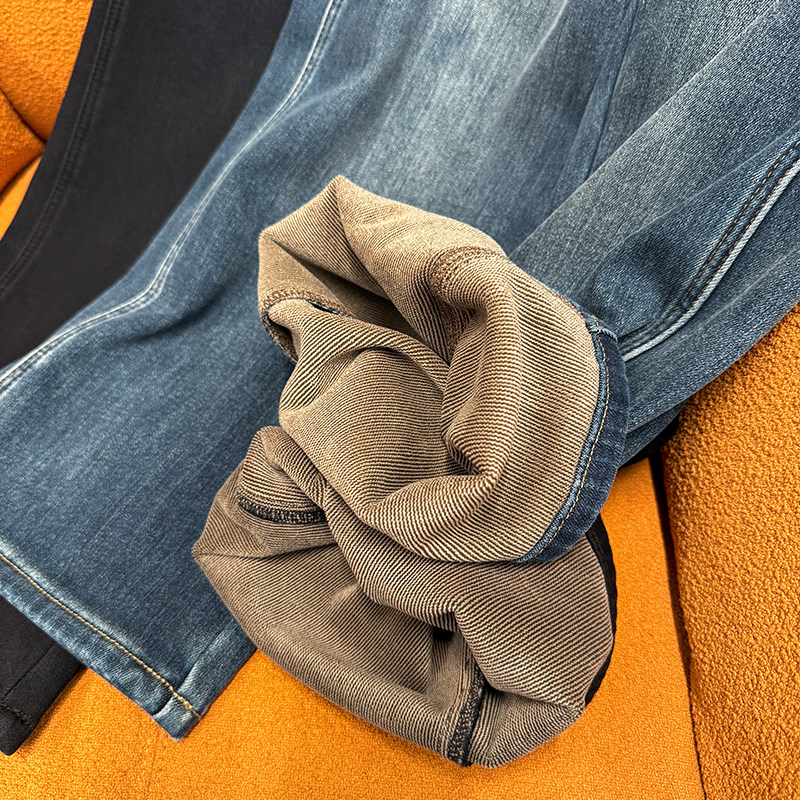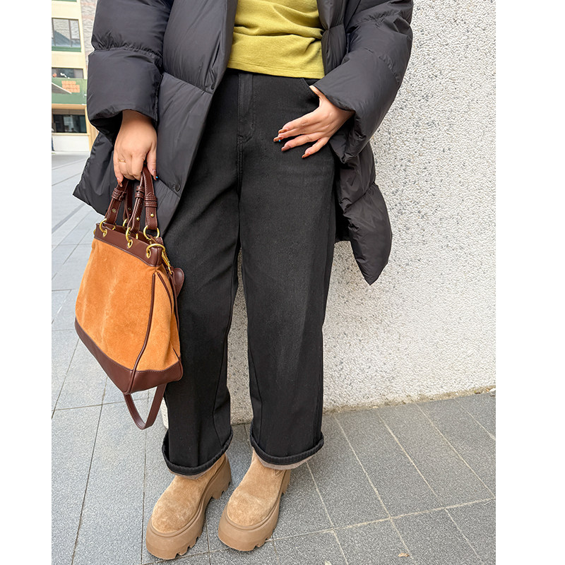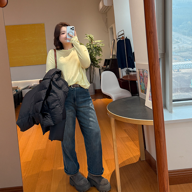 一条过冬胖mm加绒直筒牛仔裤木子理想大码女高腰显瘦裤子200斤