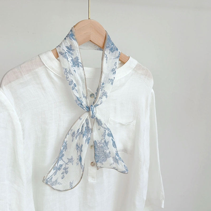 日系复古100%亚麻小丝巾女细窄长条领巾配裙子衬衫短款飘带绑发带