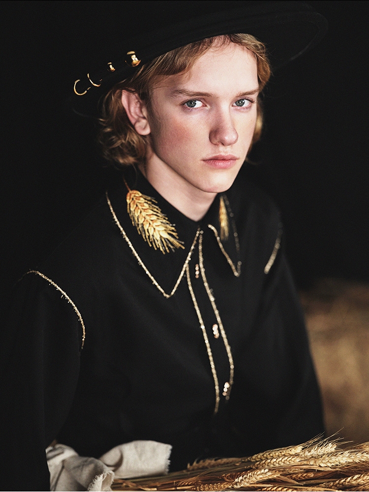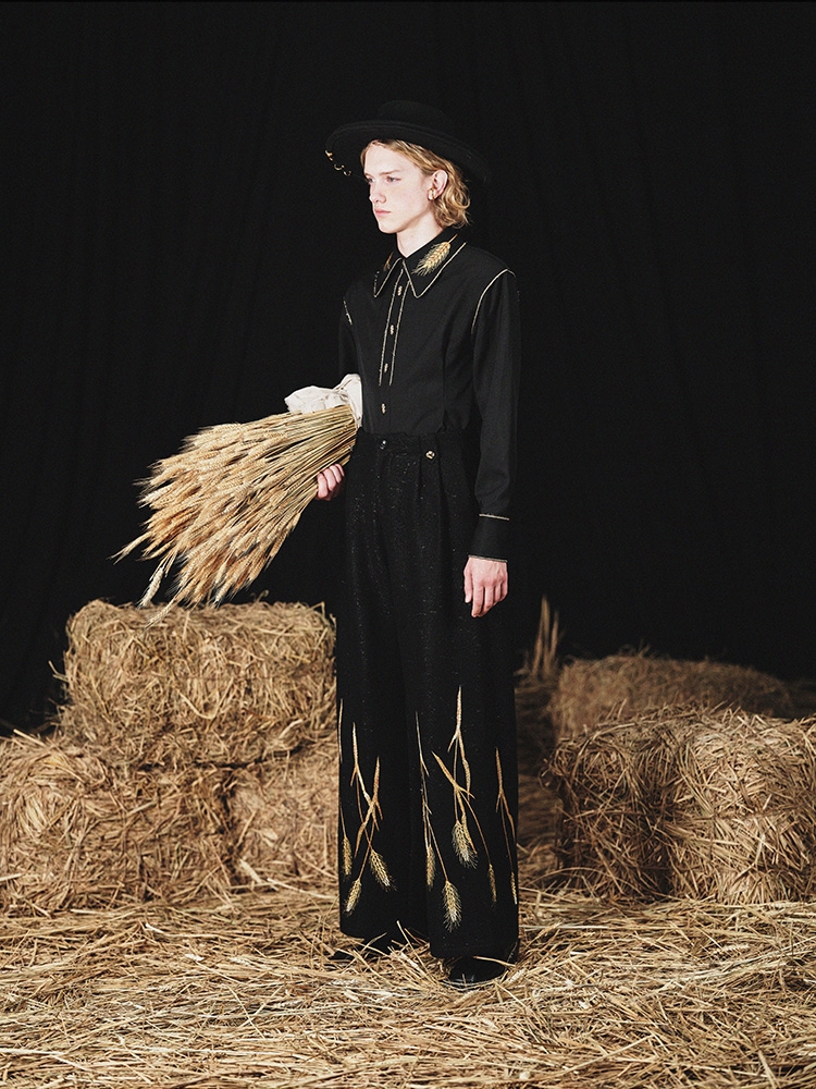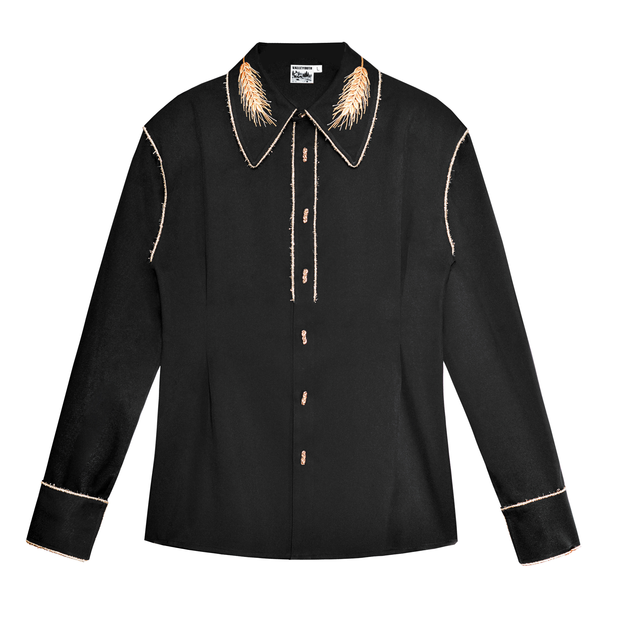 金粟 复古金丝刺绣宽肩修身收腰黑时髦衬衫 山谷少年原创设计男装