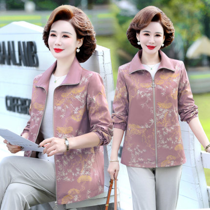 中年妈妈春秋风衣外套短款洋气中老年女春装夹克薄款大码休闲上衣