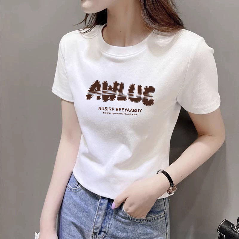正品正肩纯棉短袖T恤女外穿时尚韩系百搭简约小个子修身显瘦上衣