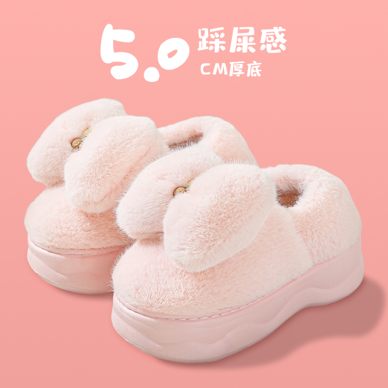 厚底包跟棉拖鞋女冬季室内高跟韩版蝴蝶结拖鞋冬加厚保暖棉鞋外穿