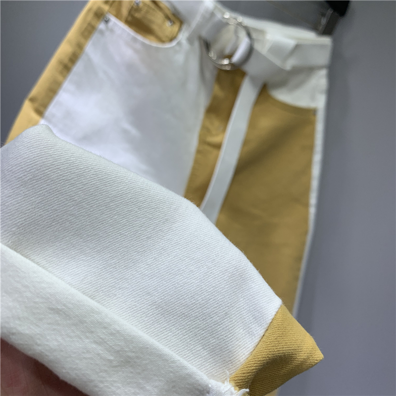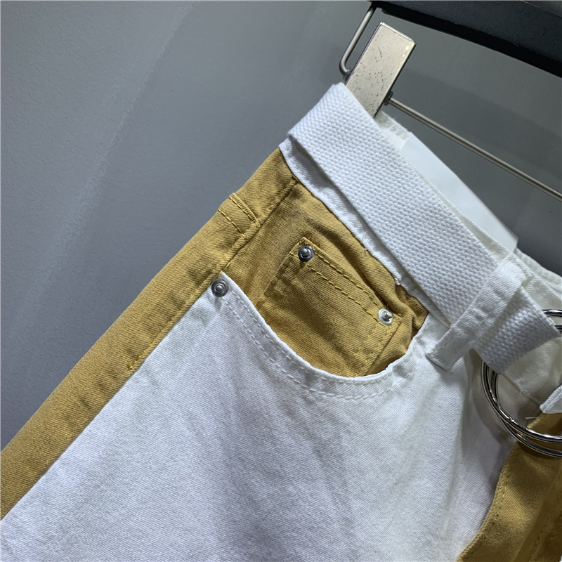 欧洲站2024春秋新款AB面拼接撞色牛仔裤高腰宽松休闲哈伦裤垮裤