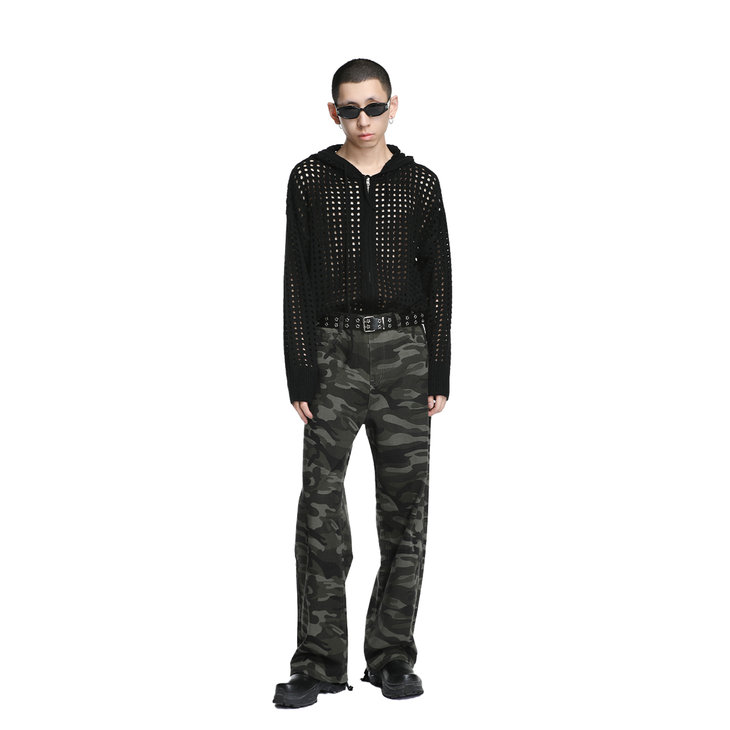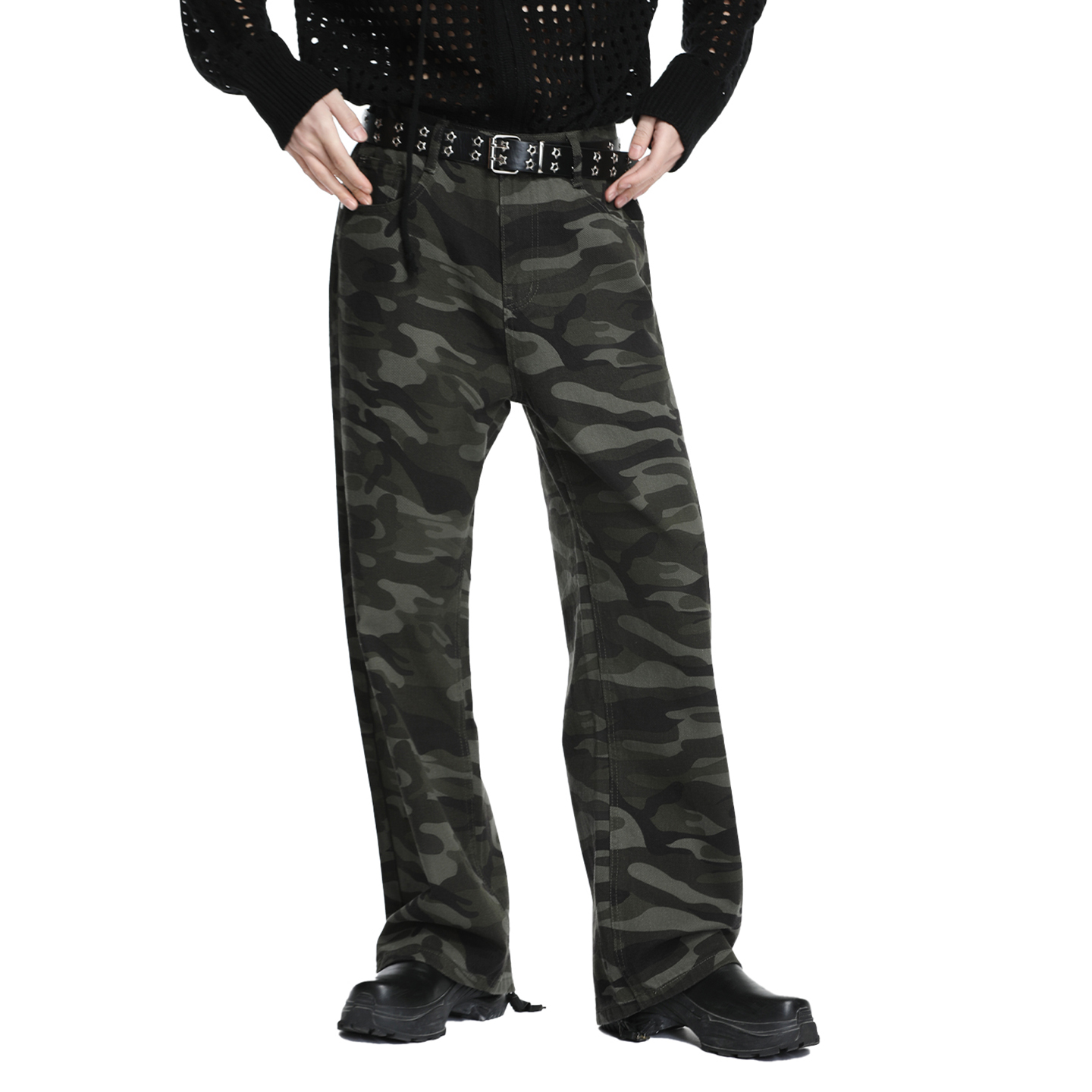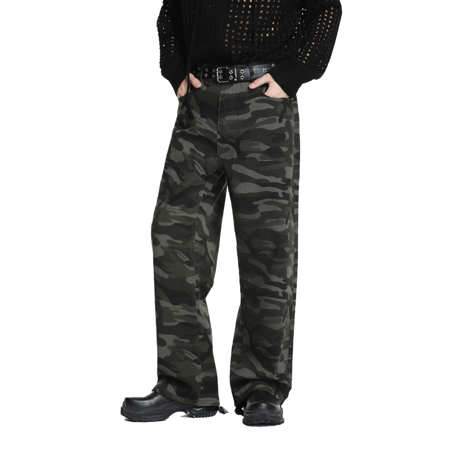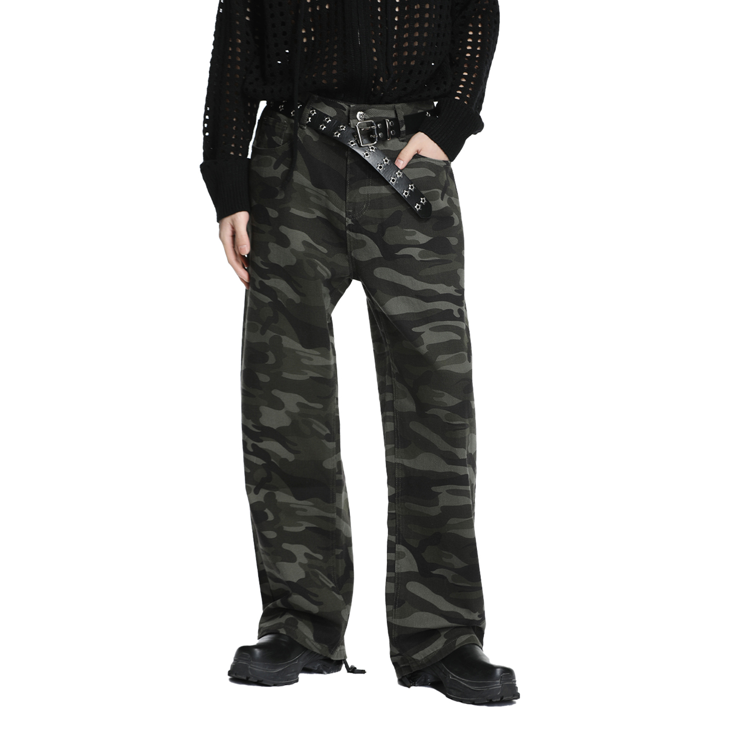 Voguo Relay 水洗深迷彩牛仔裤中腰韩版休闲百搭宽松直筒裤男女