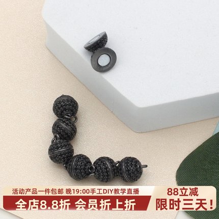 东夏手作 铜镀枪黑色满钻微镶圆形磁吸扣 手工diy手链项链连接扣