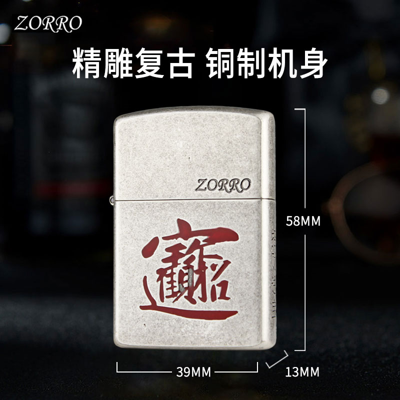 ZORRO佐罗煤油打火机防风古银精雕招财进宝复古老式砂轮火机送礼