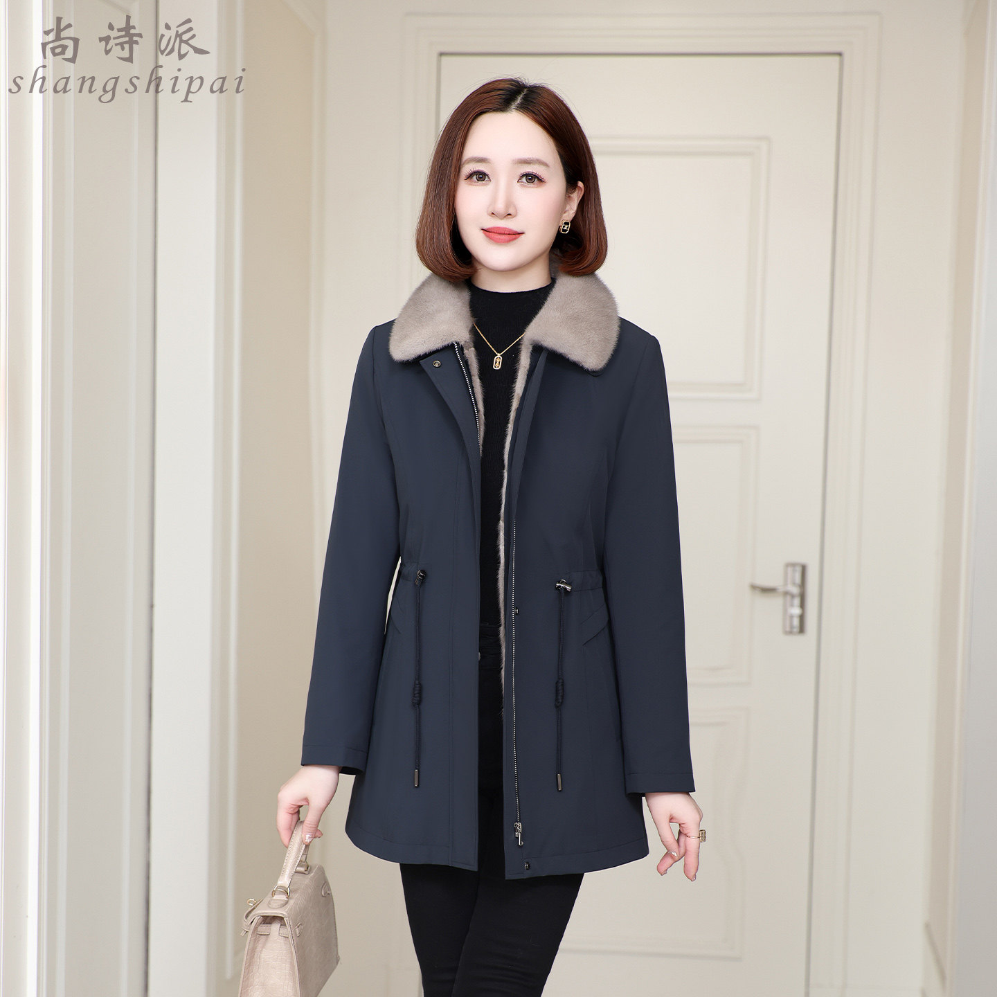 派克服女2025新款冬水貂毛内胆