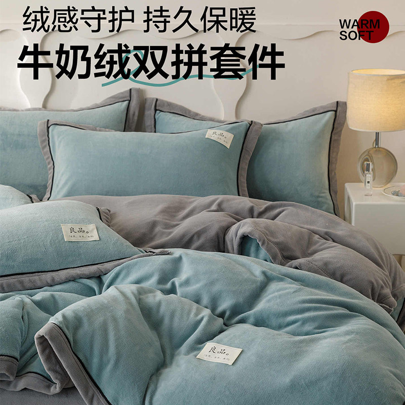 南极人2025新款牛奶绒床上四件套秋冬珊瑚绒被套床单床品三件套