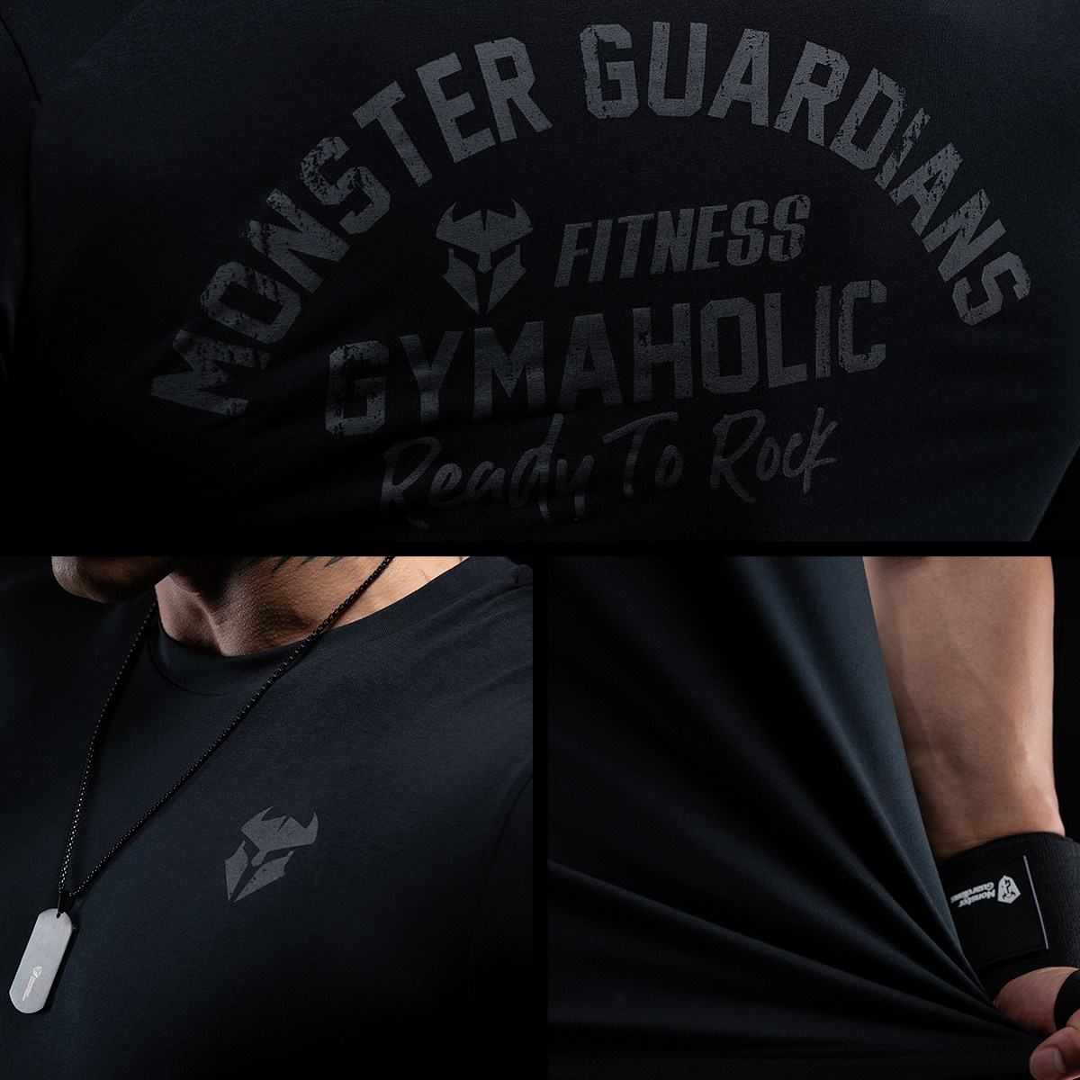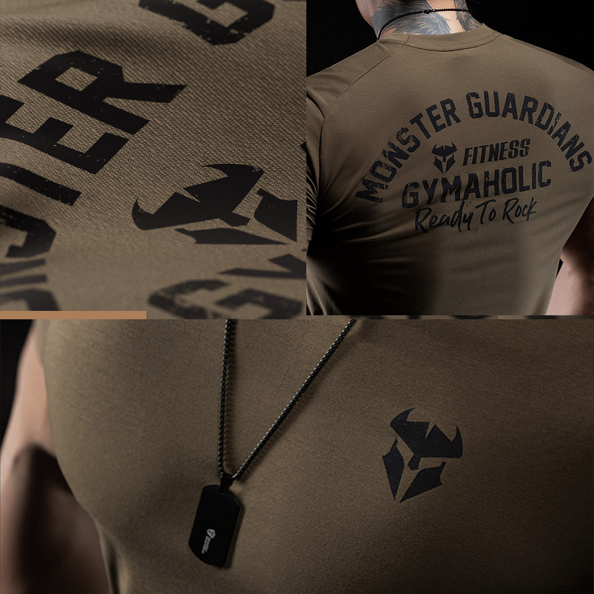 Monster Guardians运动短袖男子夏季透气健身衣服跑步训练修身T恤