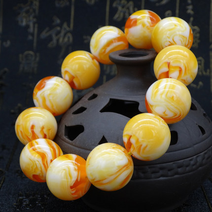 琥珀天然蜜蜡佛珠手链