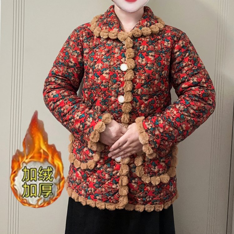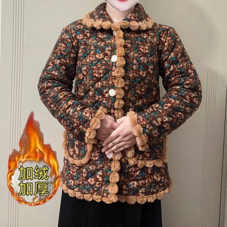 妈妈秋冬装加绒保暖棉服外套中老年女百搭棉衣大码洋气奶奶花棉袄