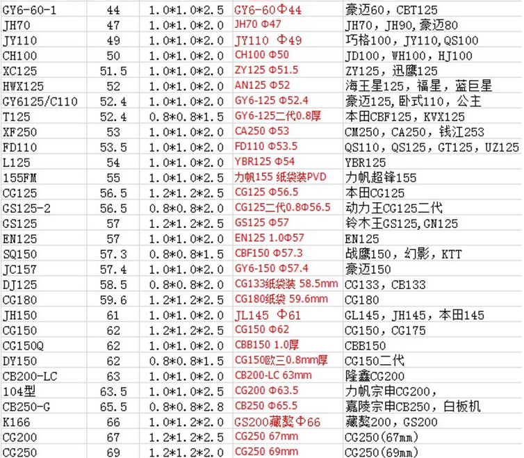 摩托车活塞环70100110巧格鬼火踏板GY6125 CG125 150 200 250嘉陵