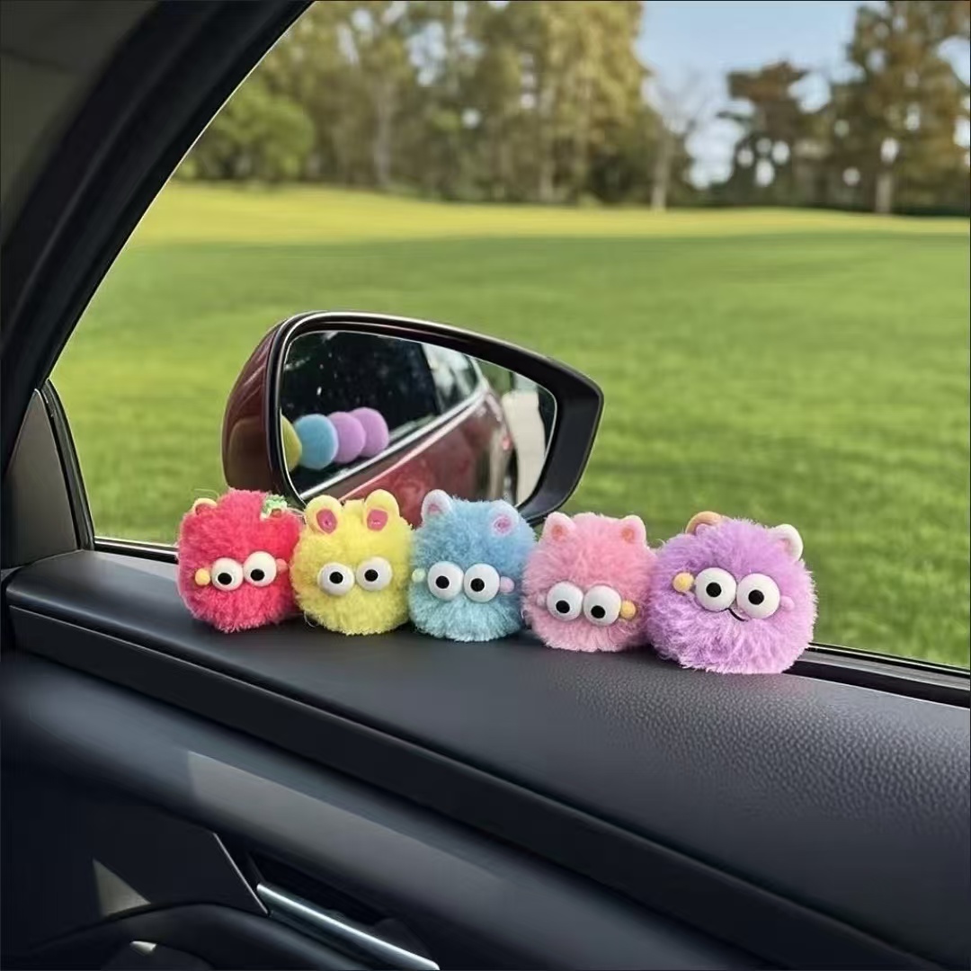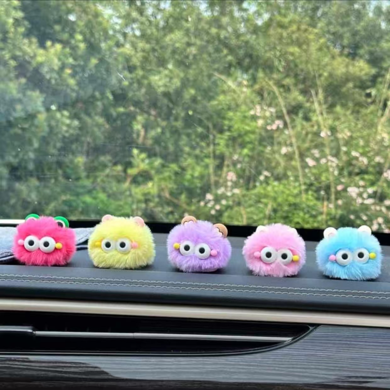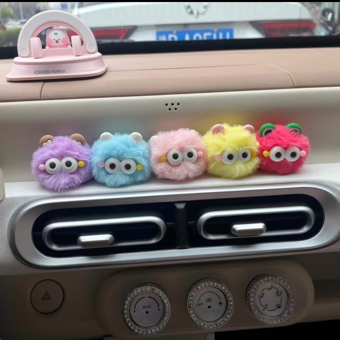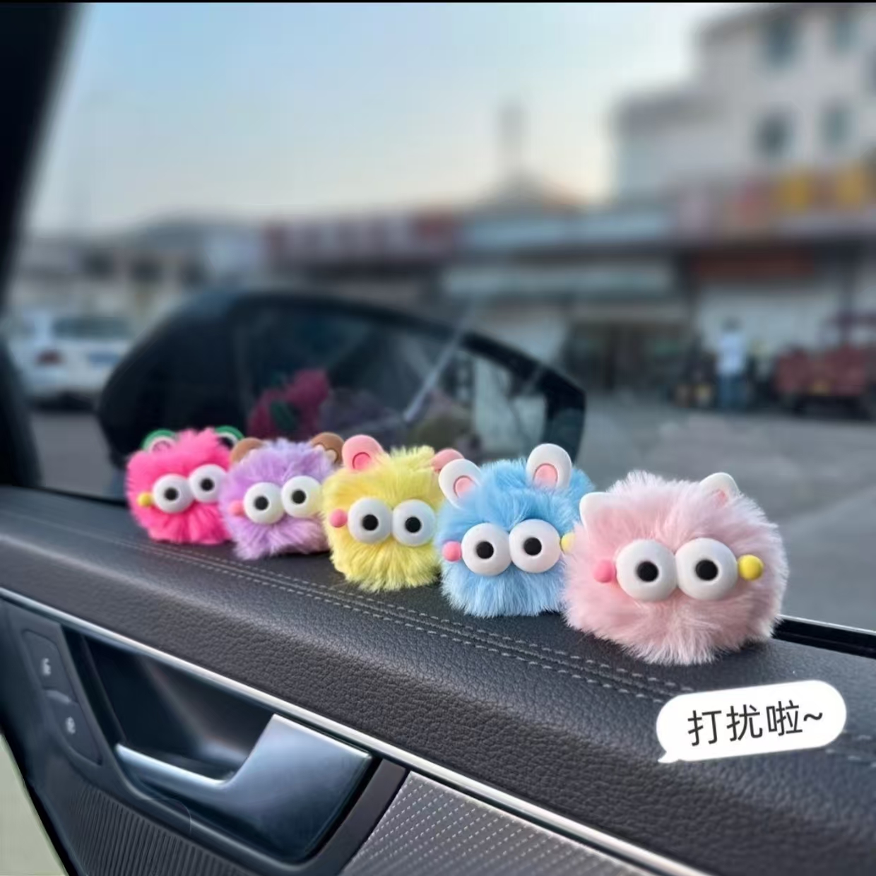 可爱呆萌小毛球车内饰品摆件汽车中控台玩偶电动车装饰车载好物