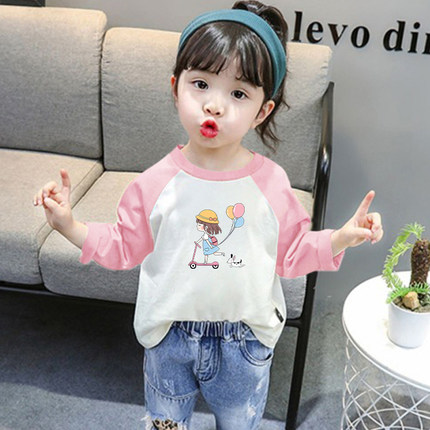 女童t恤长袖宝宝2025新款纯棉童装夏装洋气卡通体恤女打底衫上衣