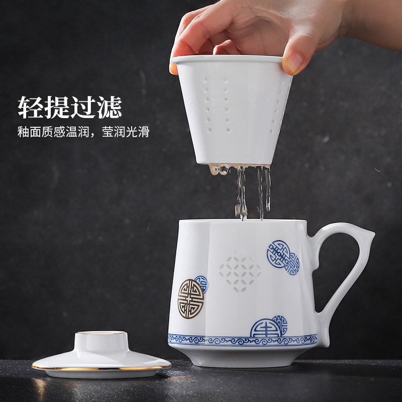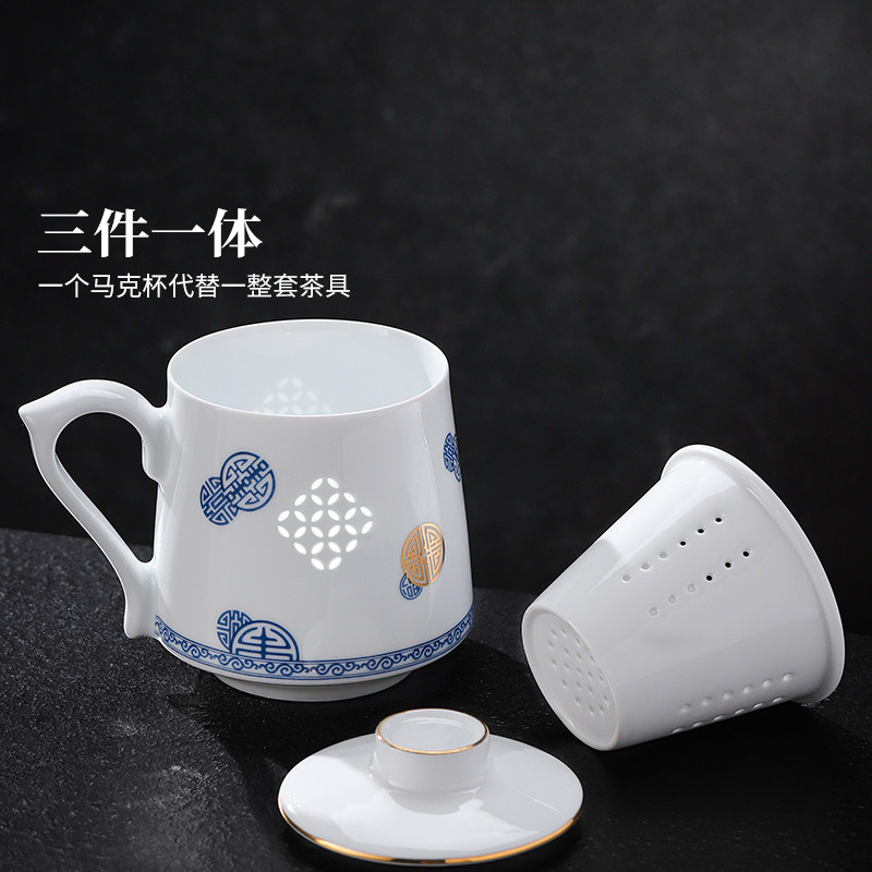 景德镇官方陶瓷玲珑茶杯家用水杯马克杯大容量办公室杯子新年送礼