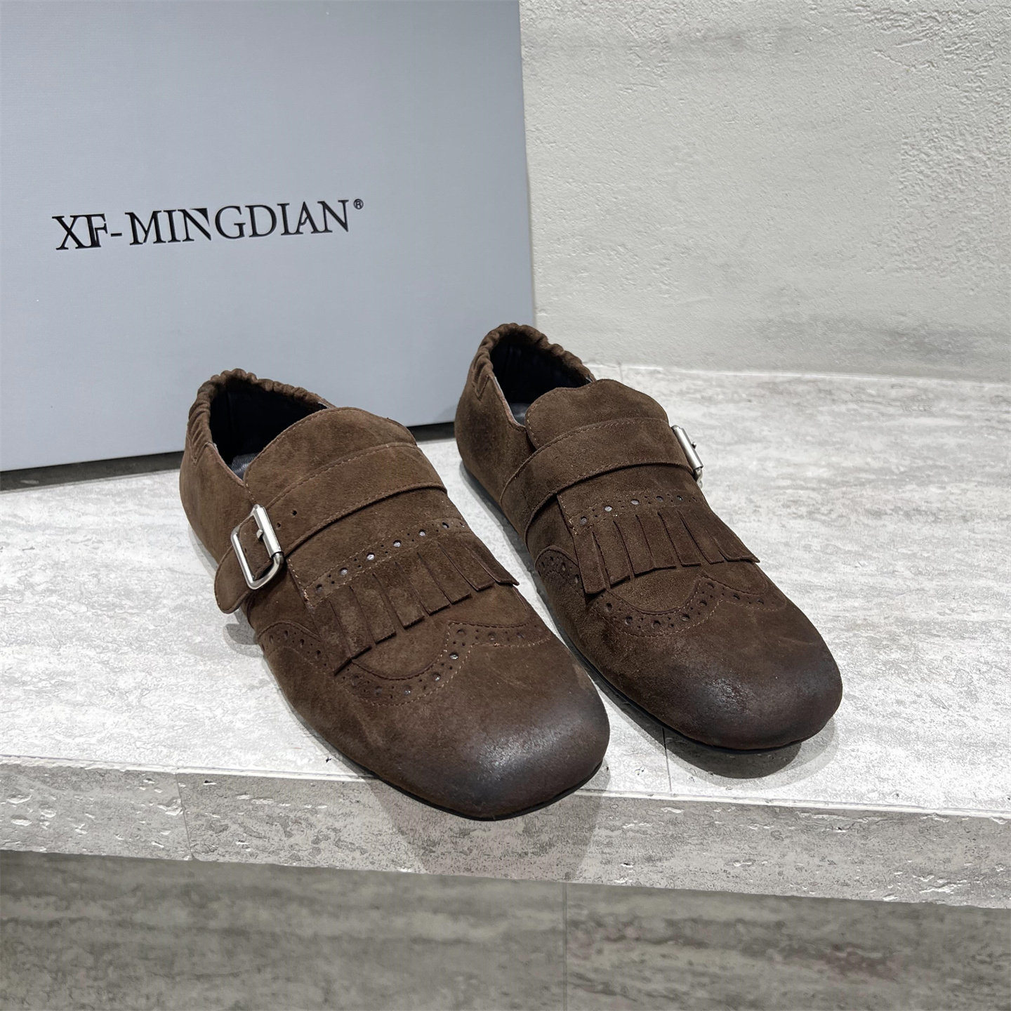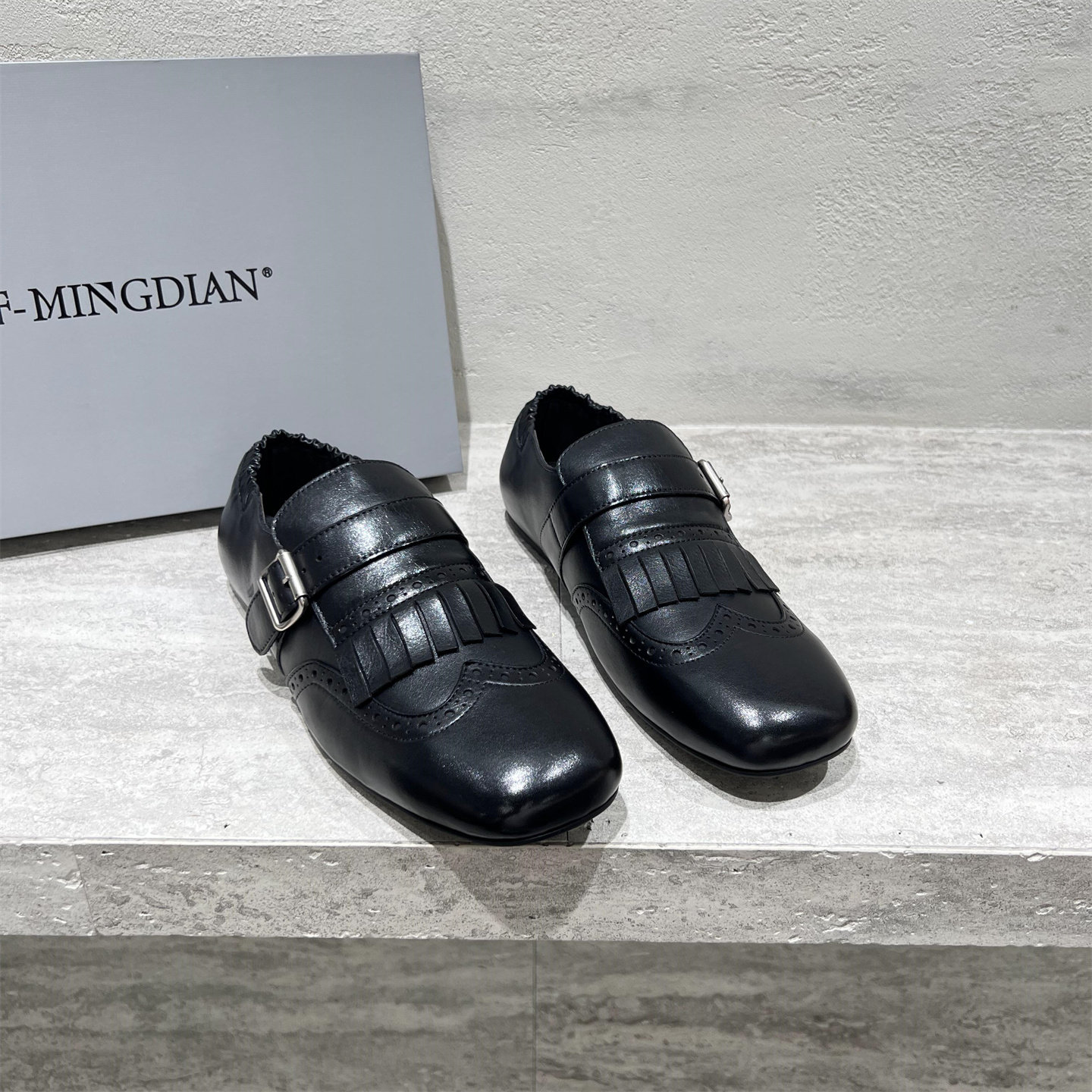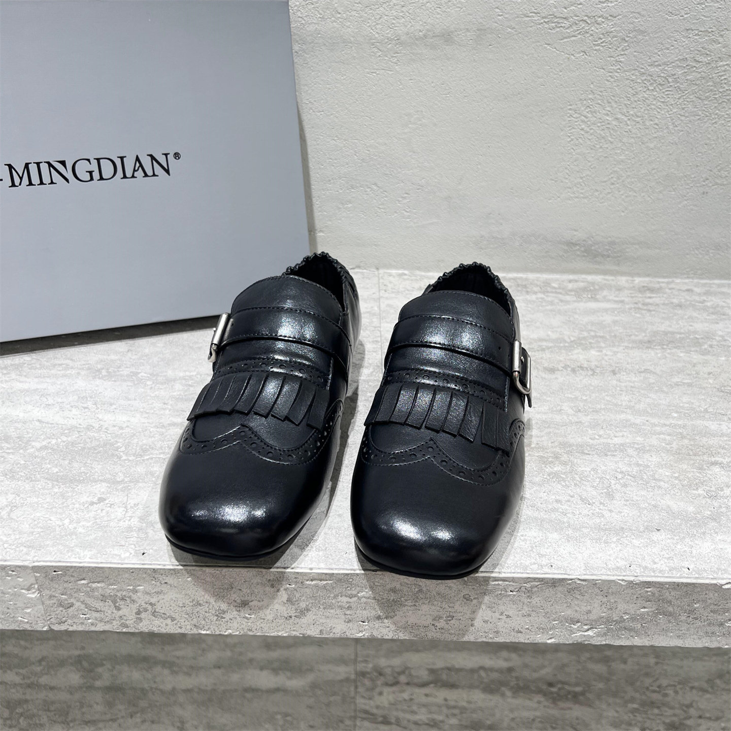 欧洲站女鞋2025秋新款欧货真皮流苏平底扣带英伦风乐福鞋玛丽珍鞋