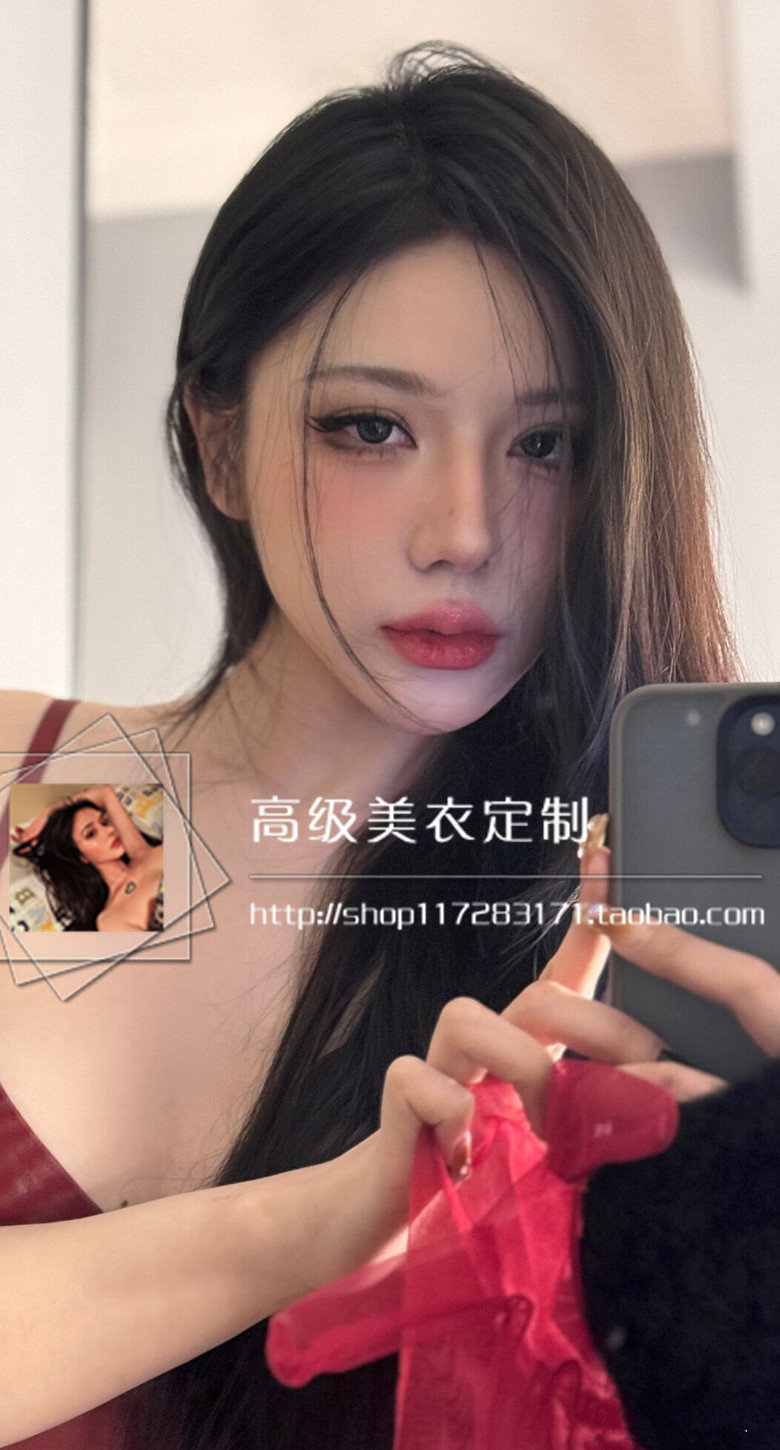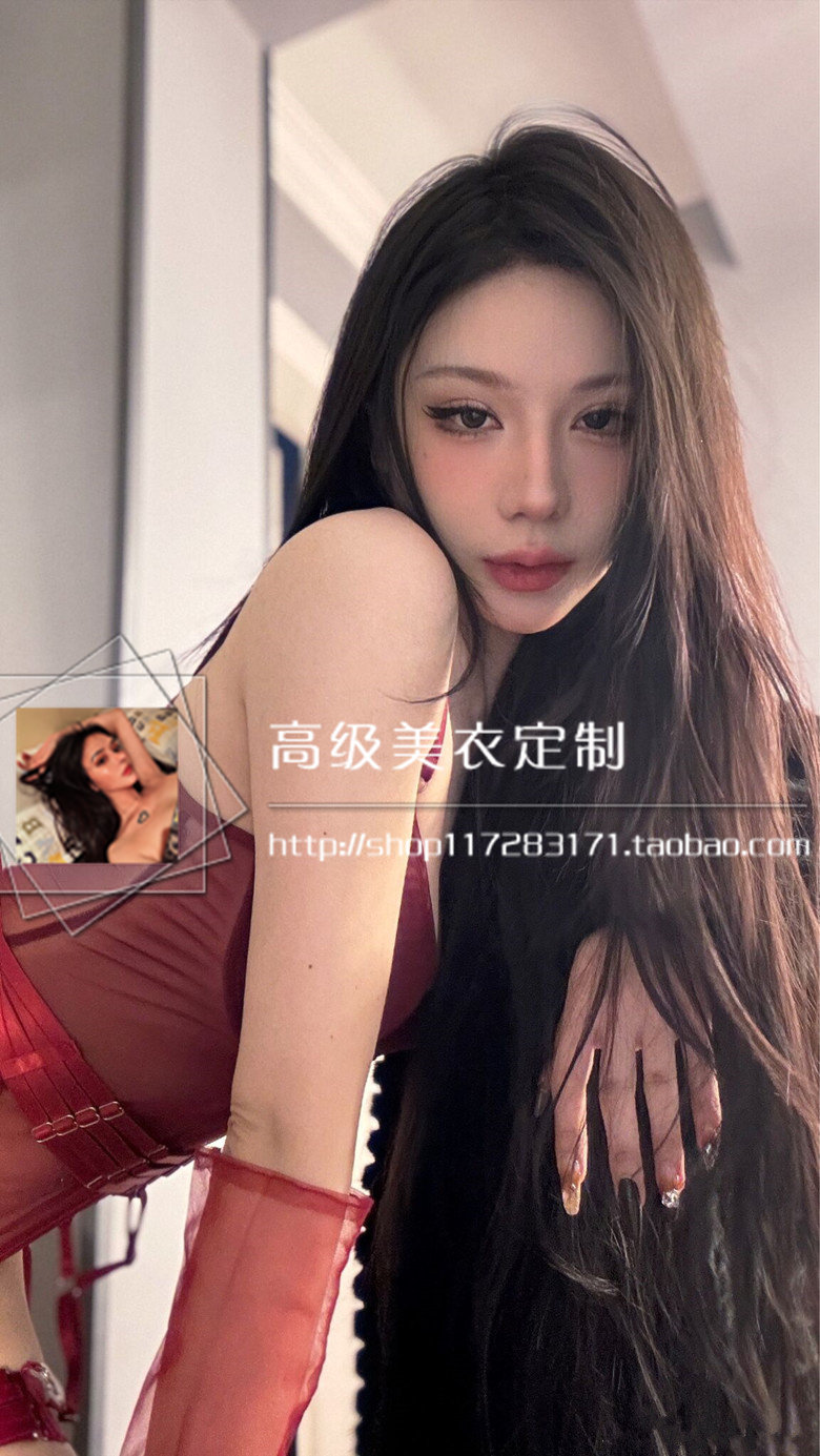 酒红色圣诞辣妹纯欲性感聚拢丝质网纱吊带袜腿环手套连体衣套装