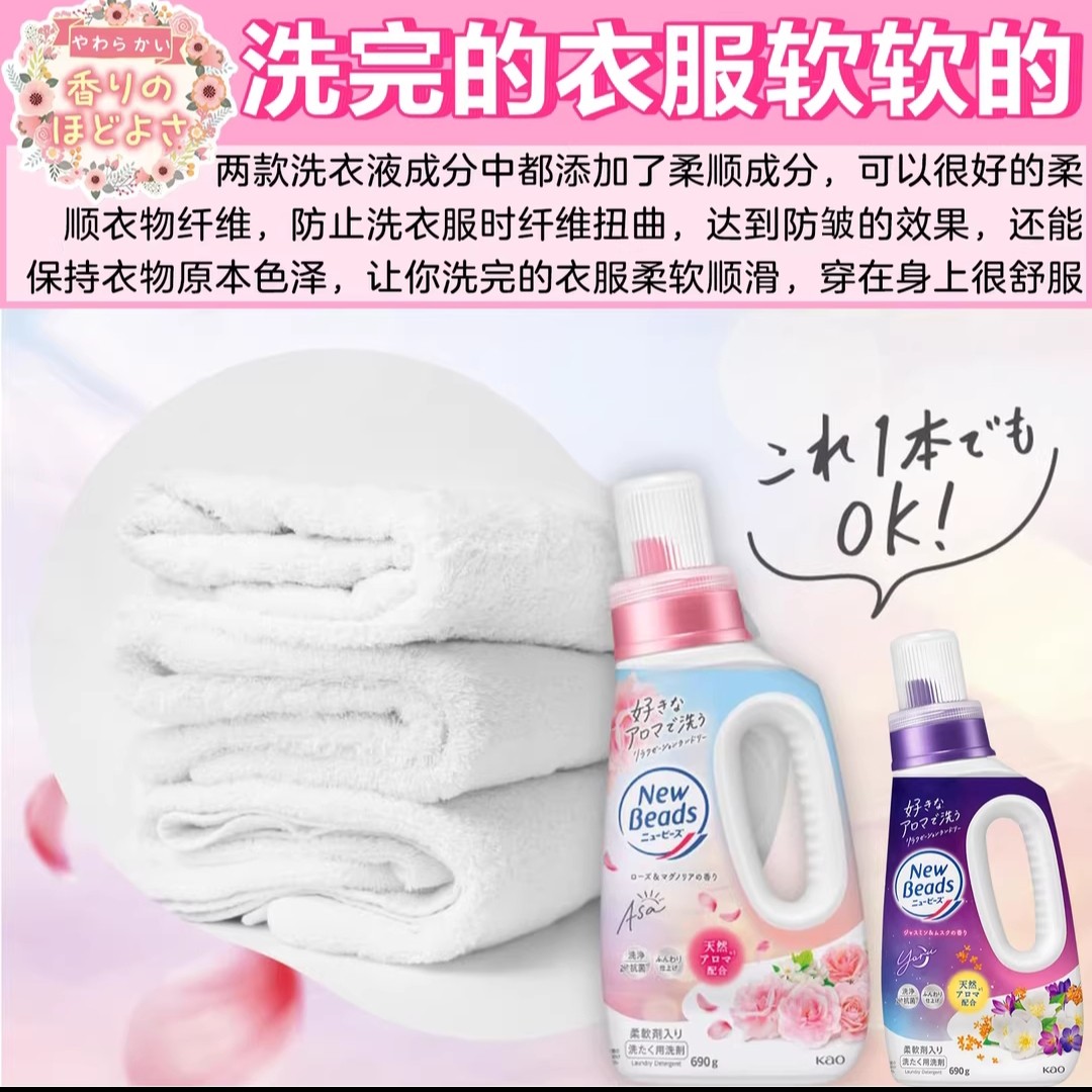 日本原装花王洗衣液玫瑰果香780g真丝含天然柔顺剂无荧光剂替换装