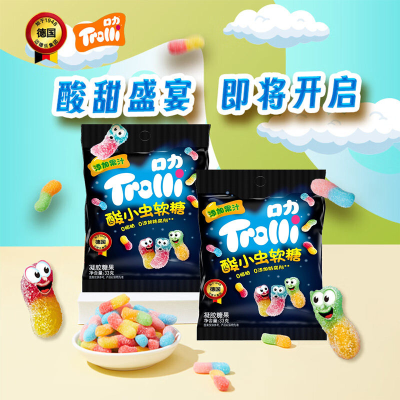 Trolli口力酸小虫软糖33g萌趣动物软糖德国进口果汁软糖儿童零食