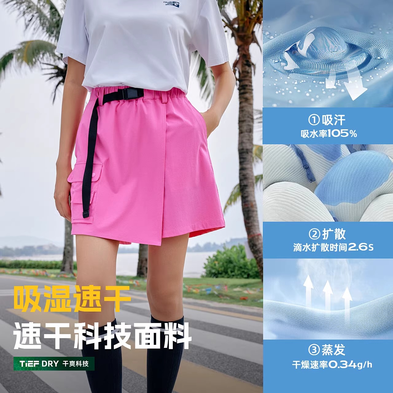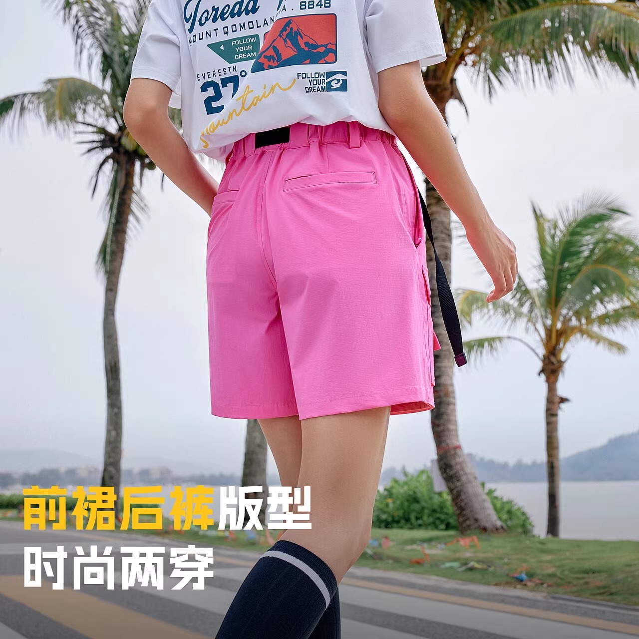 探路者速干裤女2025春夏户外新款运动短裤弹力舒适休闲女式裙裤