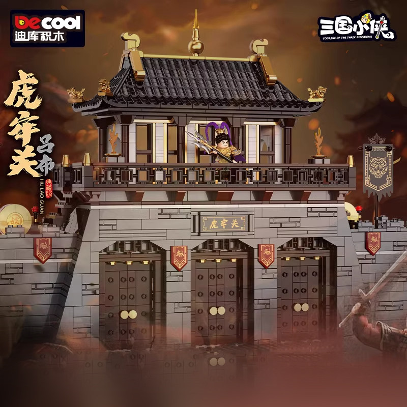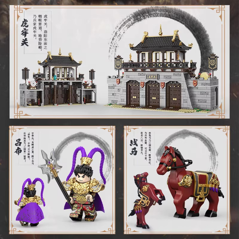 迪库三国小侠虎牢关吕布刘备关羽张飞三英战吕布主城积木城池建筑
