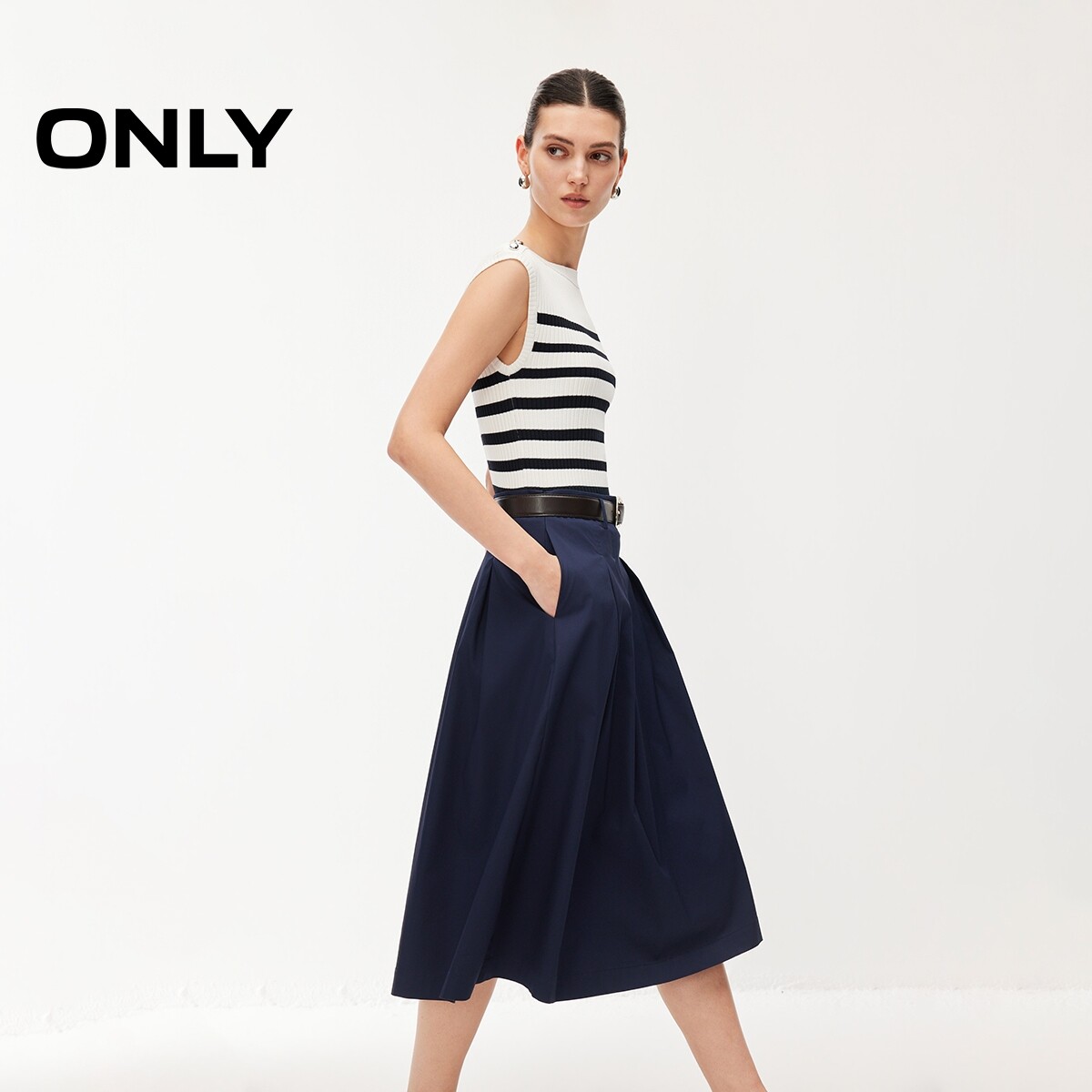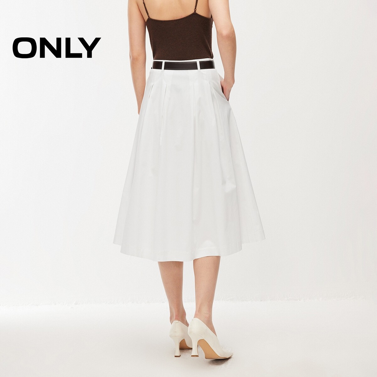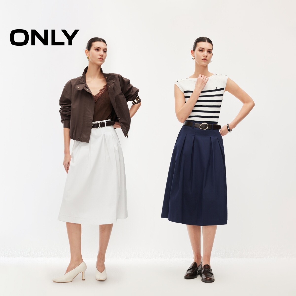 ONLY2026春季新款学院风遮胯立体褶裥A字百褶裙中长裙半身裙女