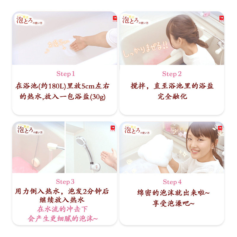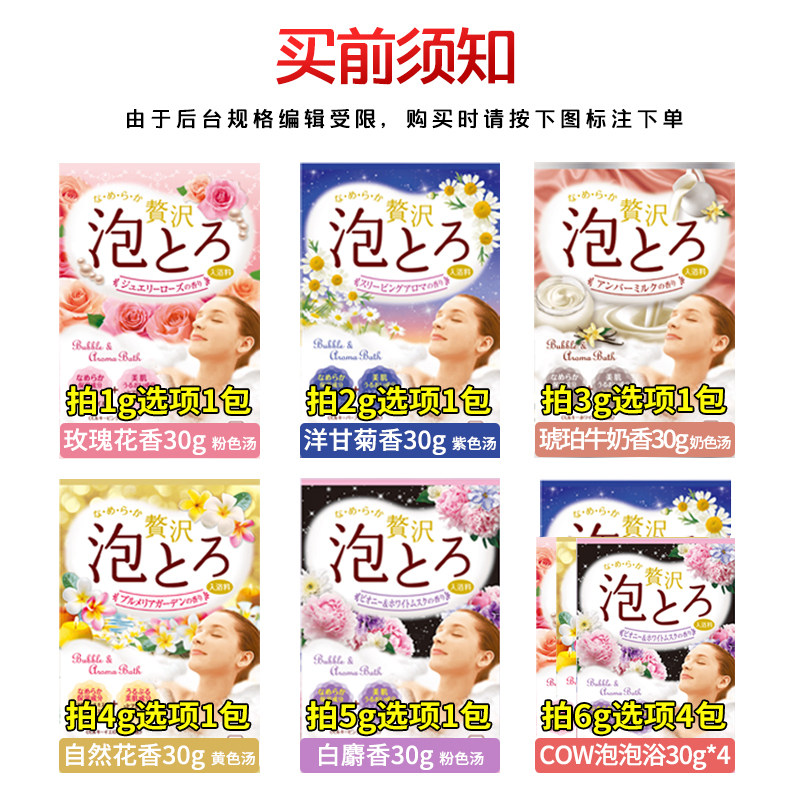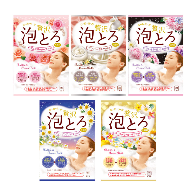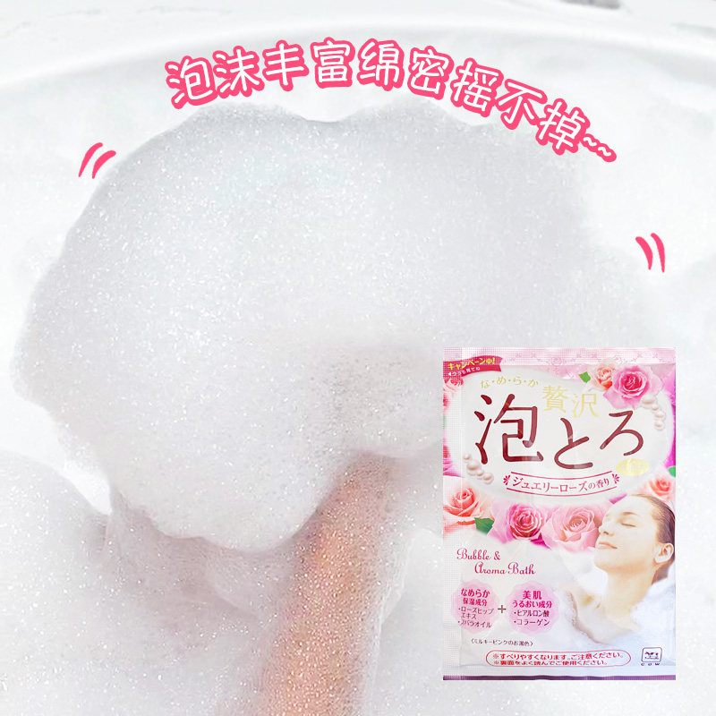 日本COW牛乳泡泡浴超多泡泡浓密玫瑰浴盐全身泡澡粉袋装入浴剂4包