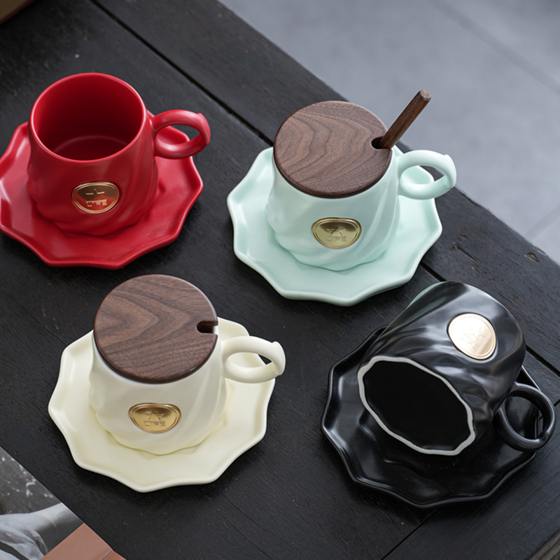 高颜值个性铜牌马克杯创意浮雕咖啡杯子刻字带盖情侣水杯定制logo
