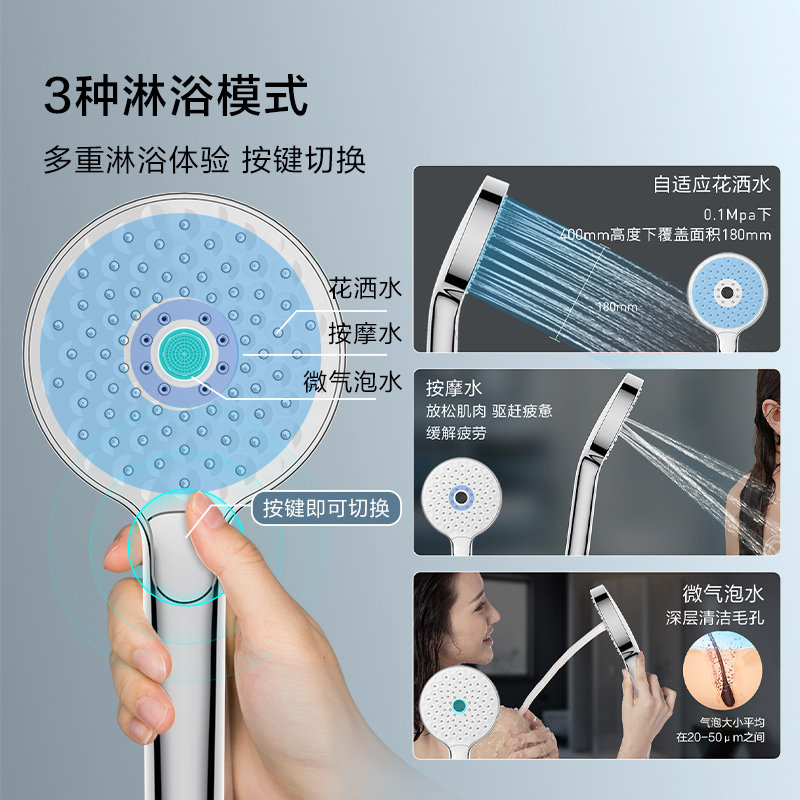 摩恩手持花洒三出水淋浴配件自适应微气泡深层清洁花洒喷头HH3600