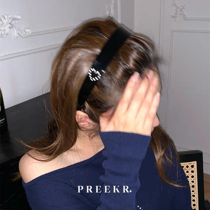 Pree韩系醋酸爱心水钻宽边发箍女头箍气质百搭外出压发头饰品