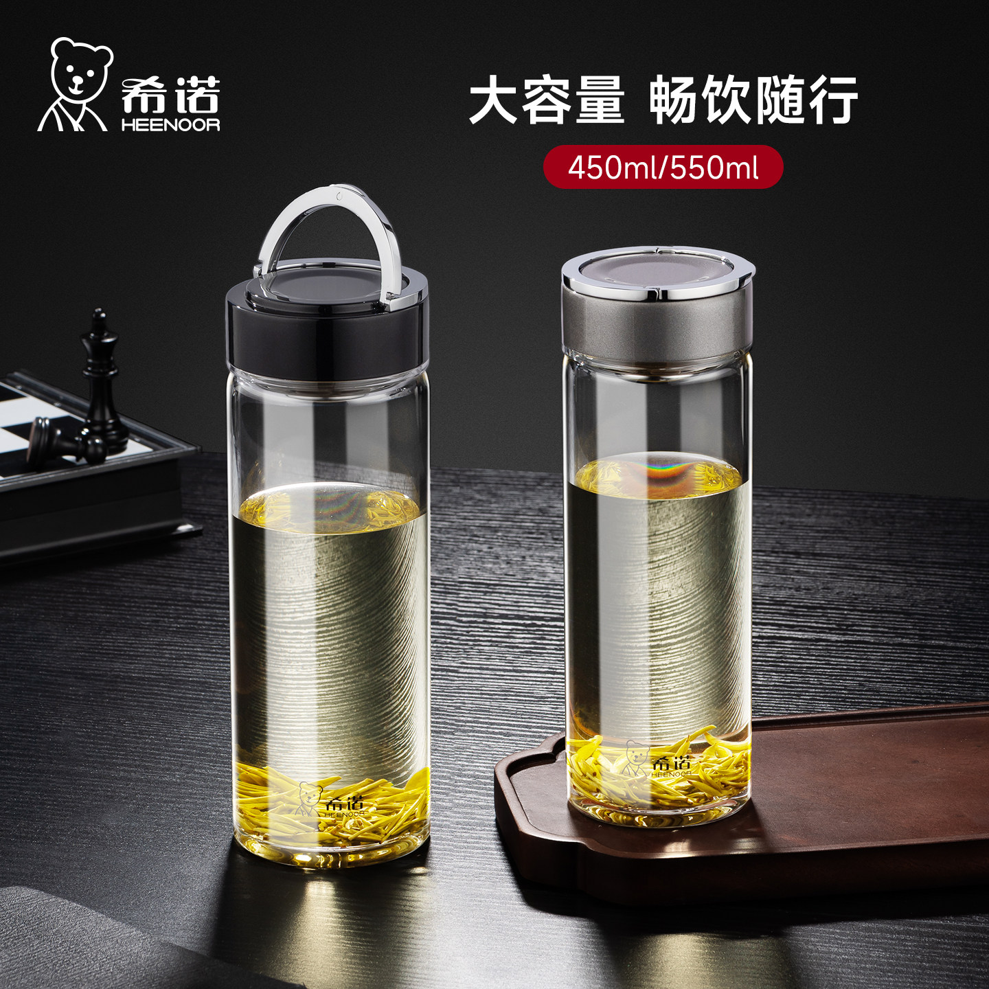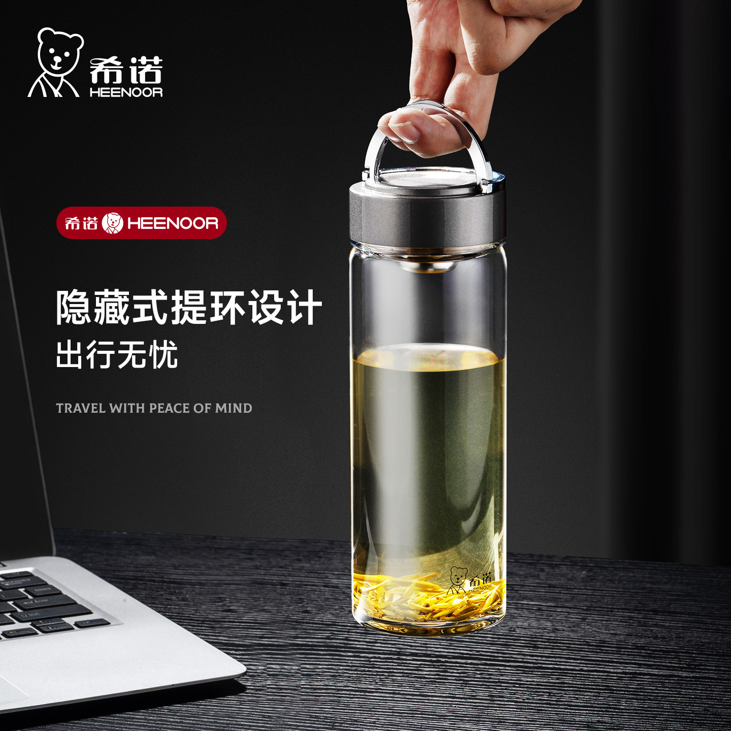 希诺新款玻璃杯 单层大容量户外泡茶杯 加厚带提环车载便携水杯子