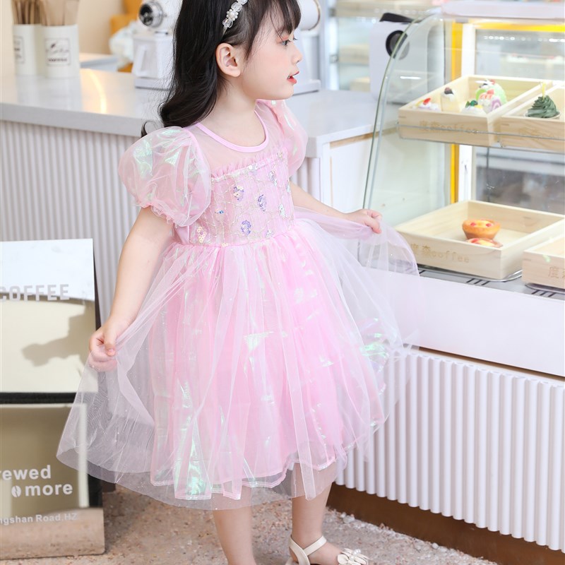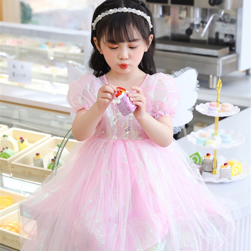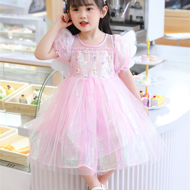 女童连衣裙夏装元旦新款儿童彩虹带翅膀生日礼服纱裙蓬蓬裙公主裙