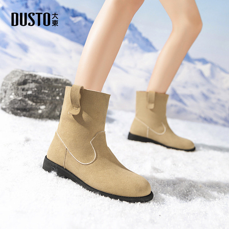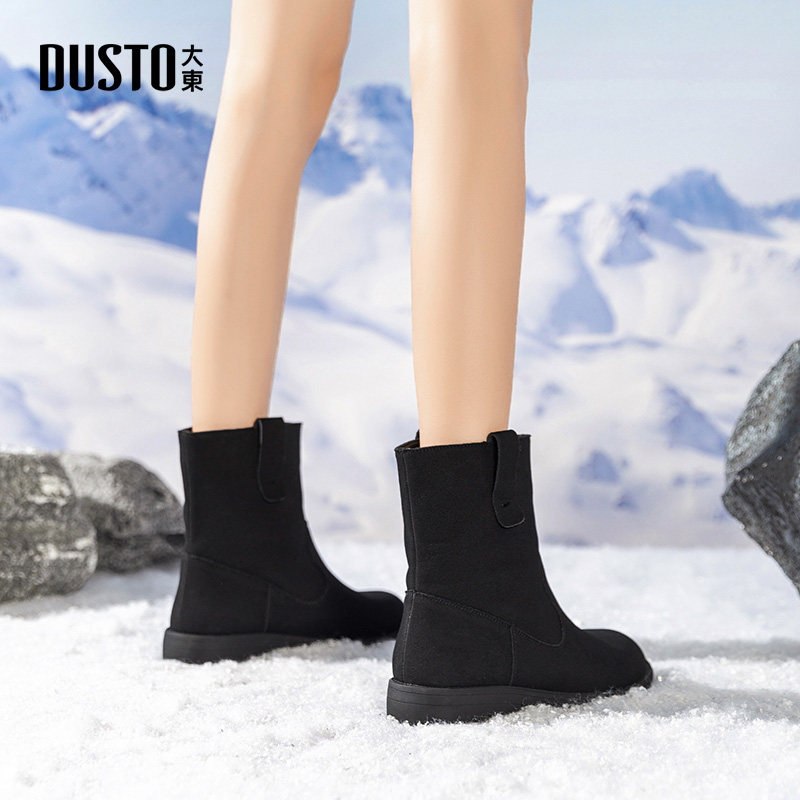 大东女鞋短靴2025冬季新款复古西部牛仔靴女靴粗跟英伦烟筒时装靴