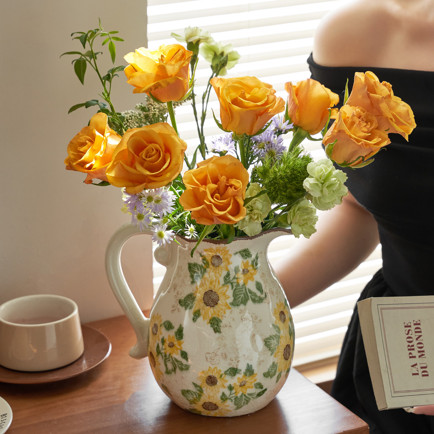 创意手提美式乡村冰裂奶壶陶瓷花瓶水养玫瑰插花摆件装饰品田园风