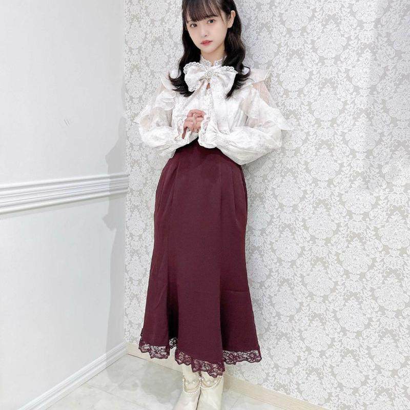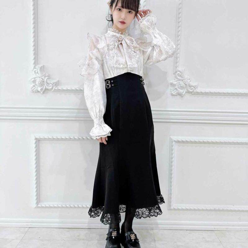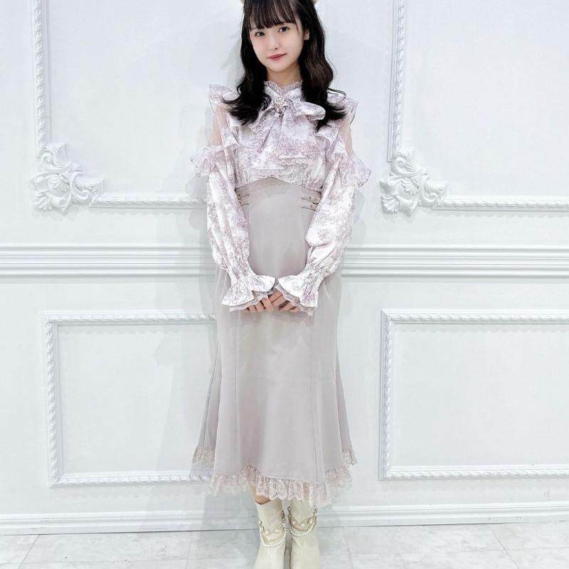 女士花纹拼接长袖连衣裙鱼尾裙蕾丝大人风复古小飞袖清楚系RJ原D