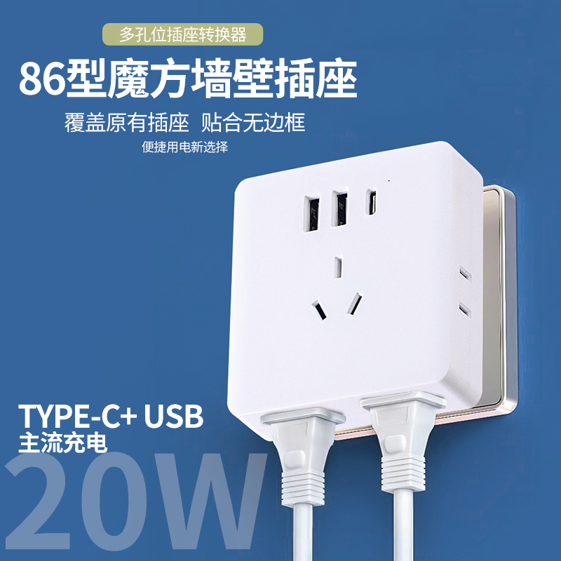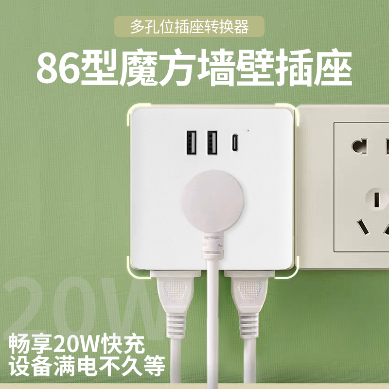 86型面板开关插座USB转换器多孔家用一转四无线快充明装电源插座