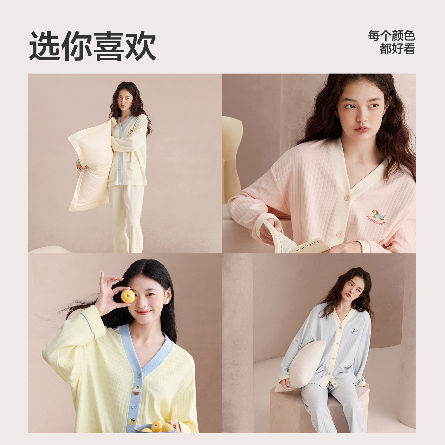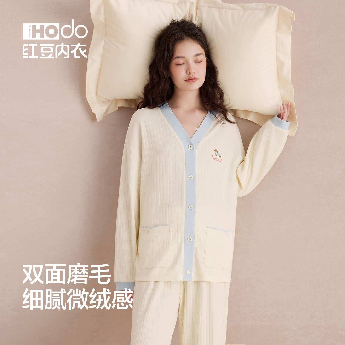 红豆柔柔棉睡衣女春秋季长袖纯棉可爱小狗抗菌防螨家居服套装