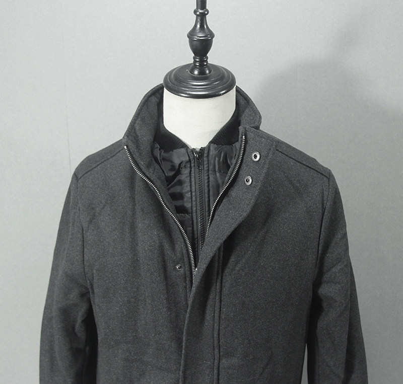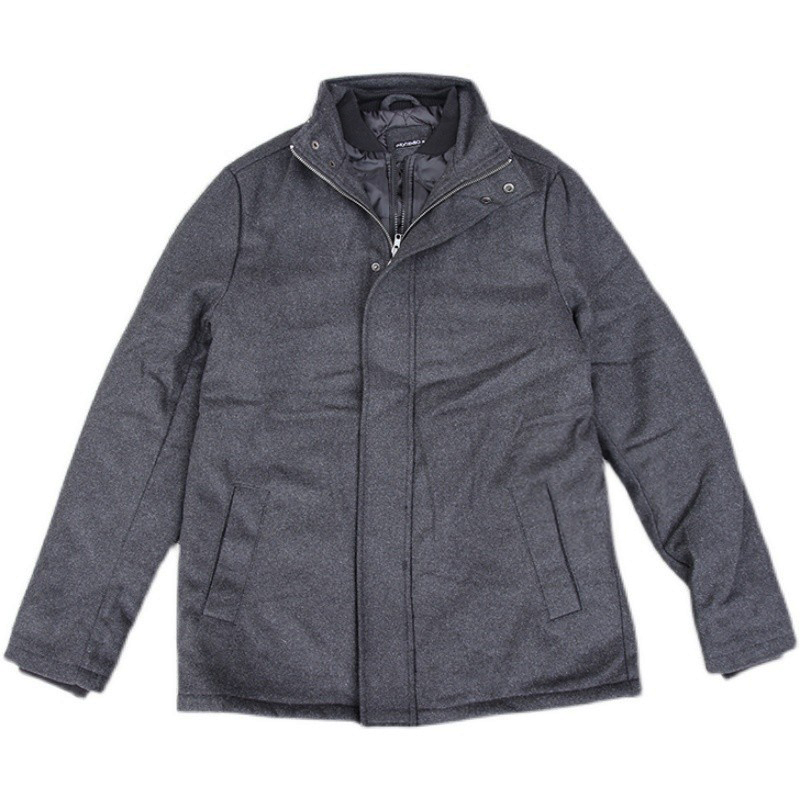 外单欧美单冬季男士中长款毛呢大衣外套简约宽松商务休闲棉衣棉服