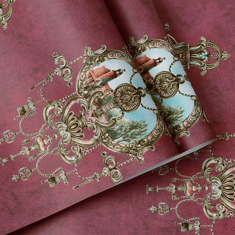 美式复古红色大花墙纸奢华欧式无纺布壁纸卧室客厅电视背景墙法式