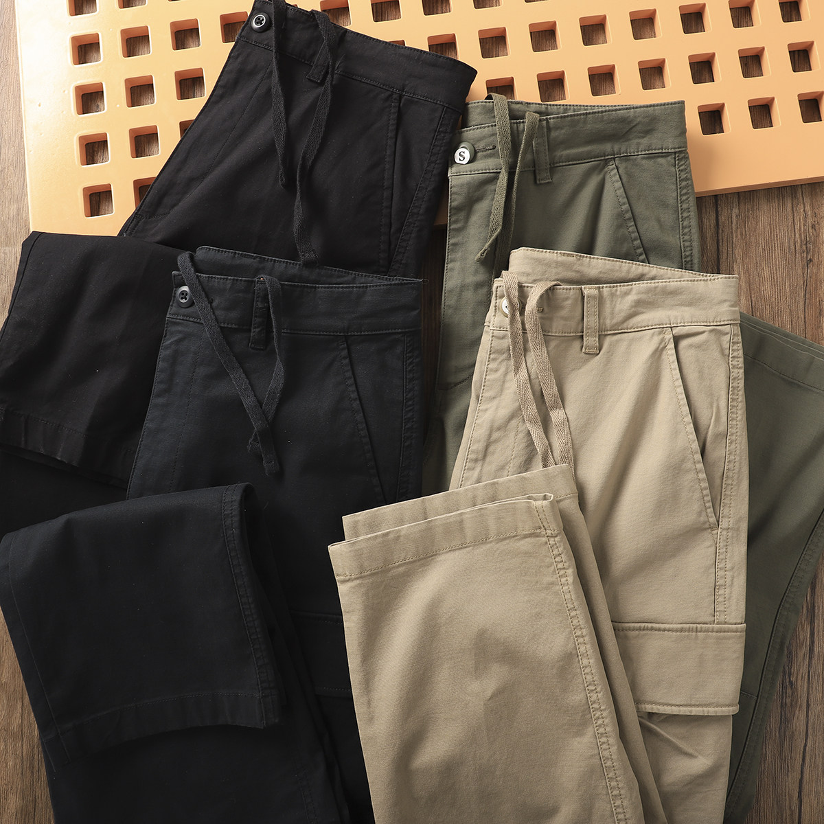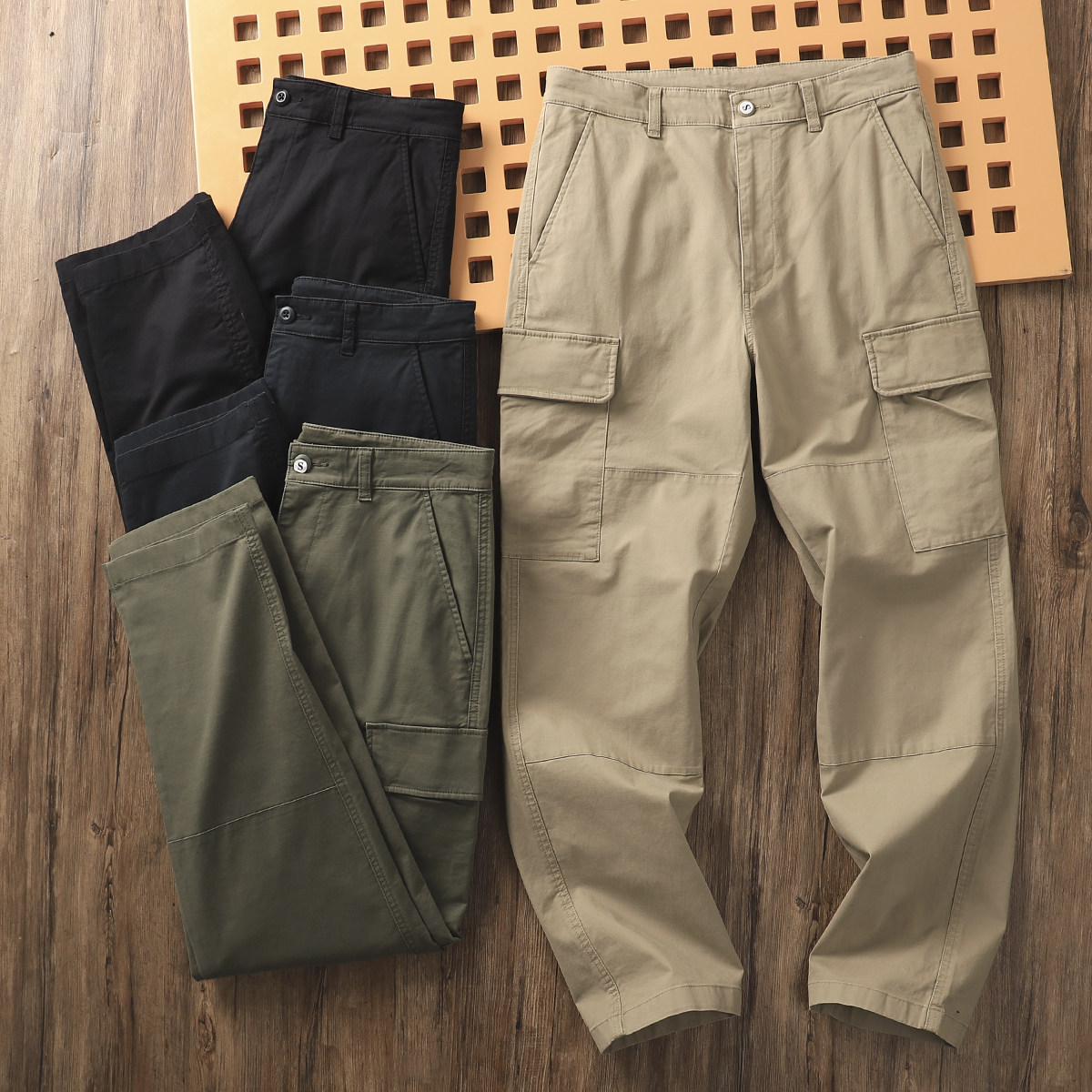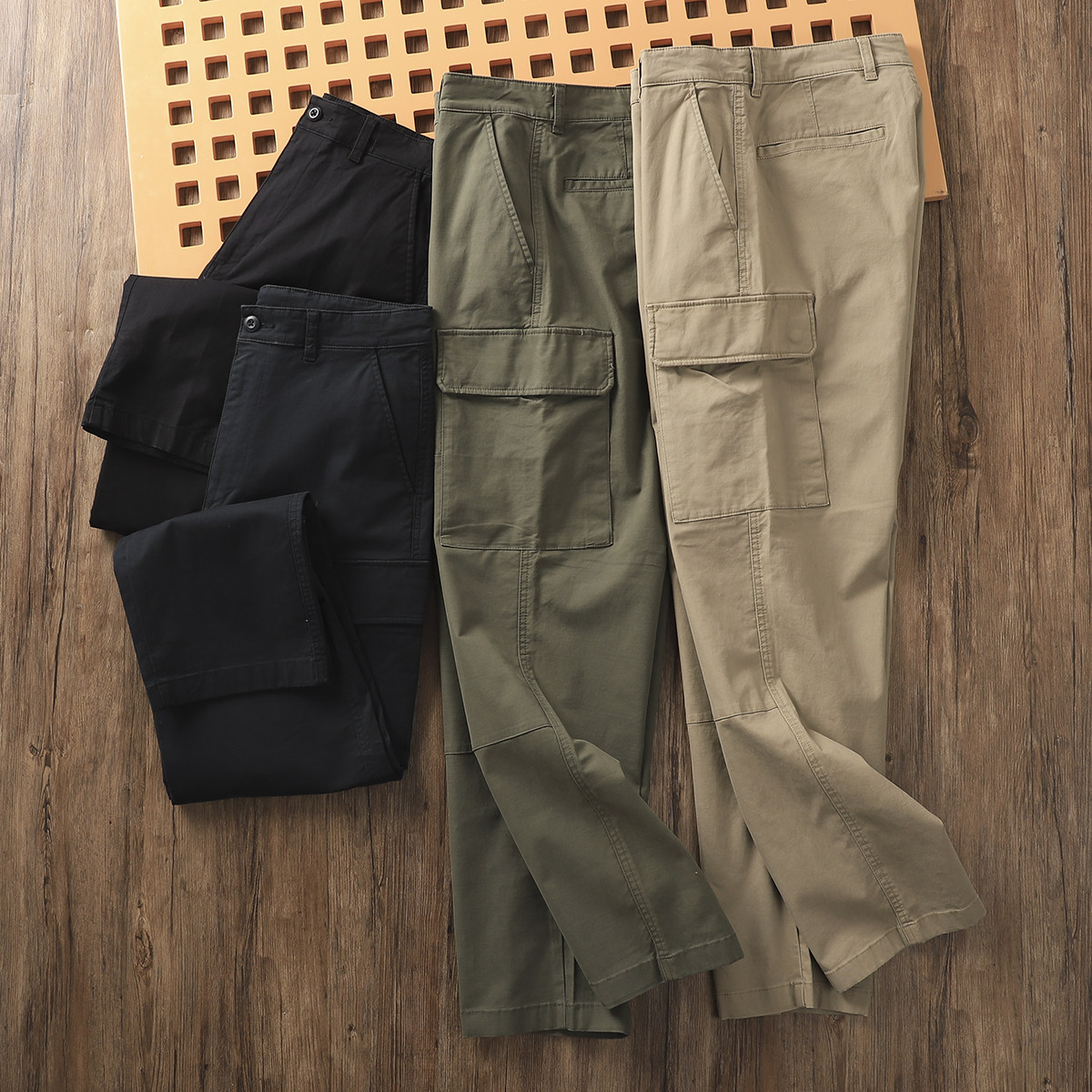 硬朗有型【东吉U家】春季男士全棉多口袋弹力直筒工装裤休闲长裤