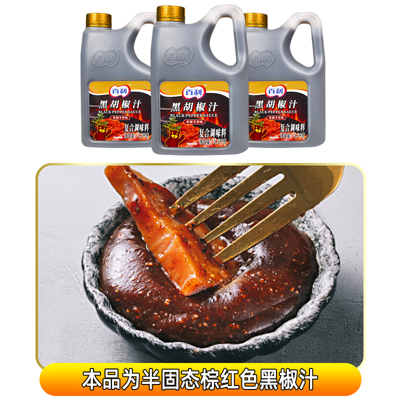 百利黑胡椒汁商用2.3kg西餐牛排黑胡椒酱韩式烤肉拌饭蘸酱调料酱