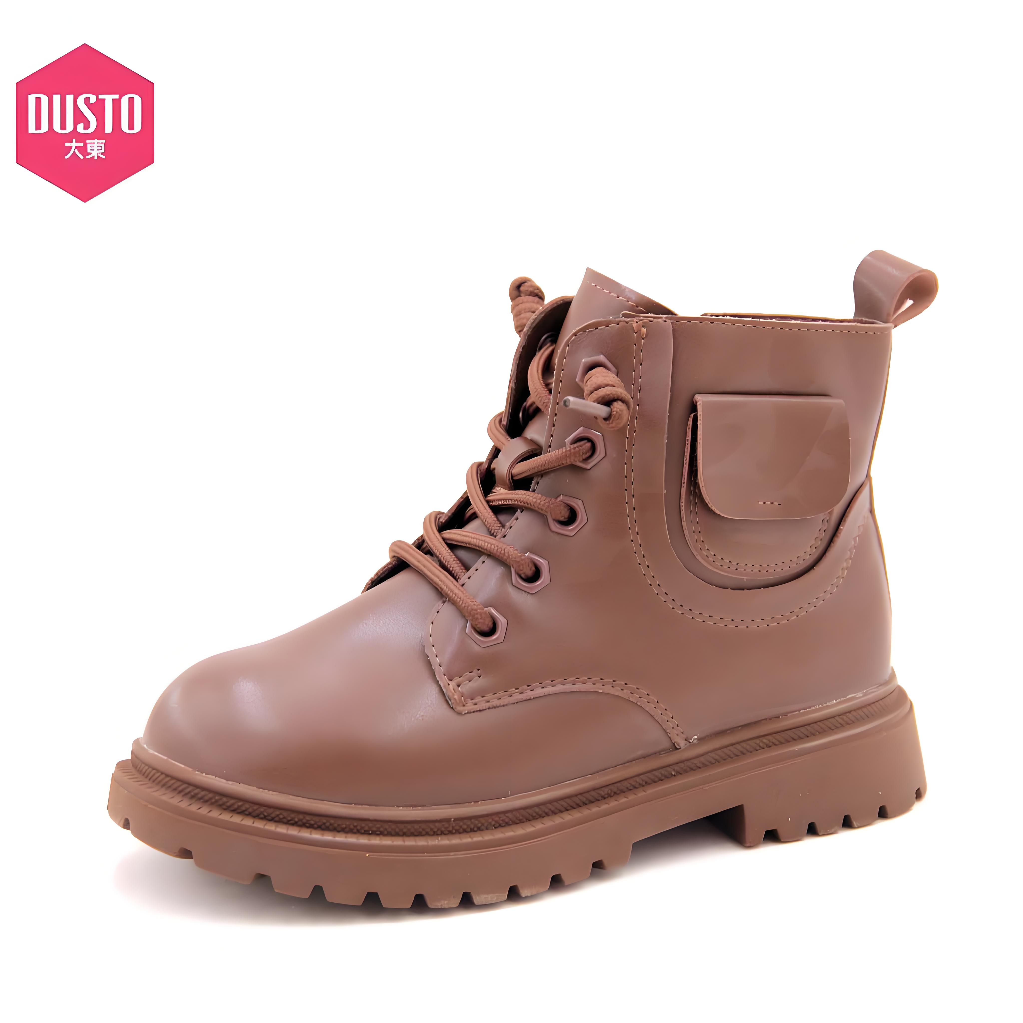 大东24冬季新品韩版女童洋气圆头加绒侧拉链时尚马丁靴24D1611